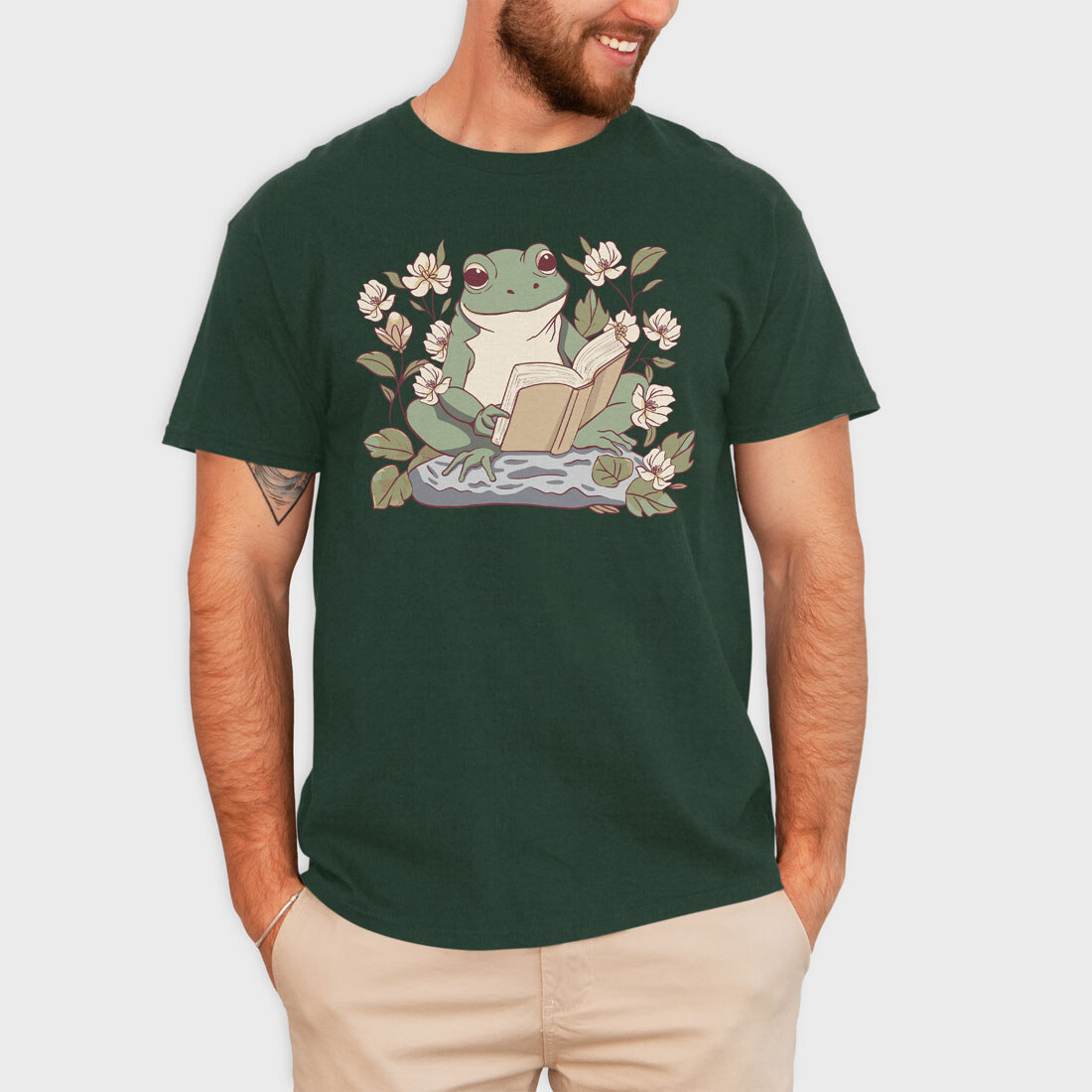 Frog Reading Cottagecore, Tricou Barbati (Unisex)