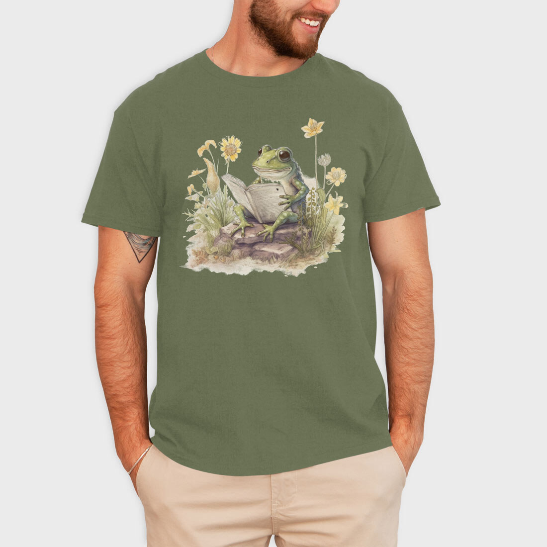 Frog Reading Watercolor, Tricou Barbati (Unisex)