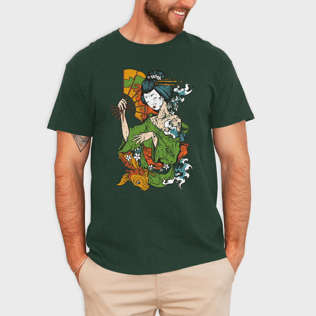 Geisha Koi Fan, Tricou Barbati (Unisex)