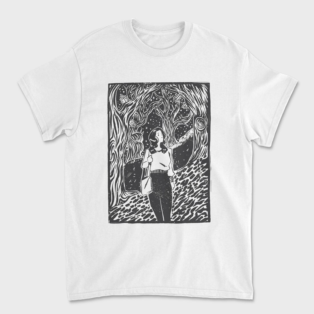 Girl Walking On Magical Forest Lino Art, Tricou Barbati (Unisex)