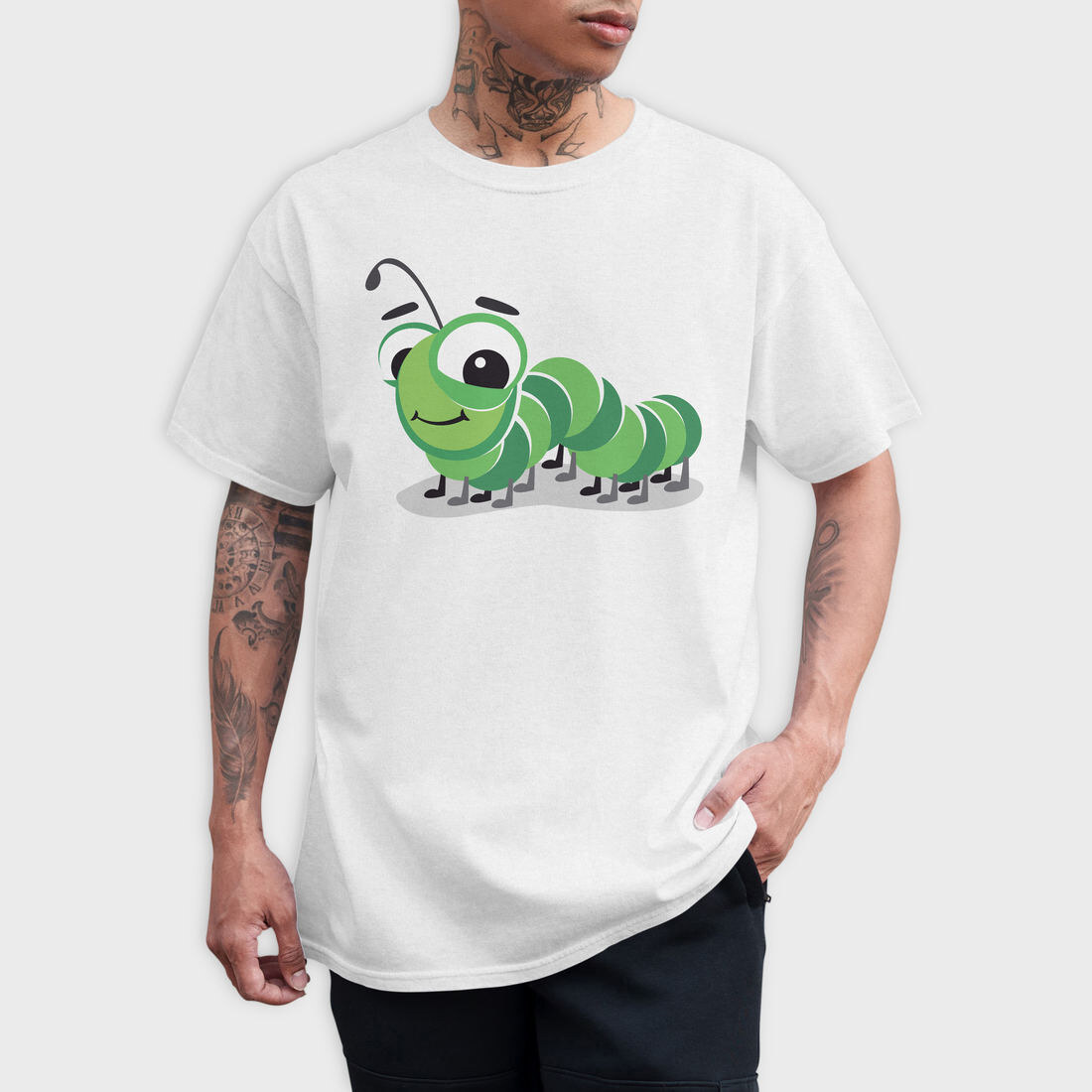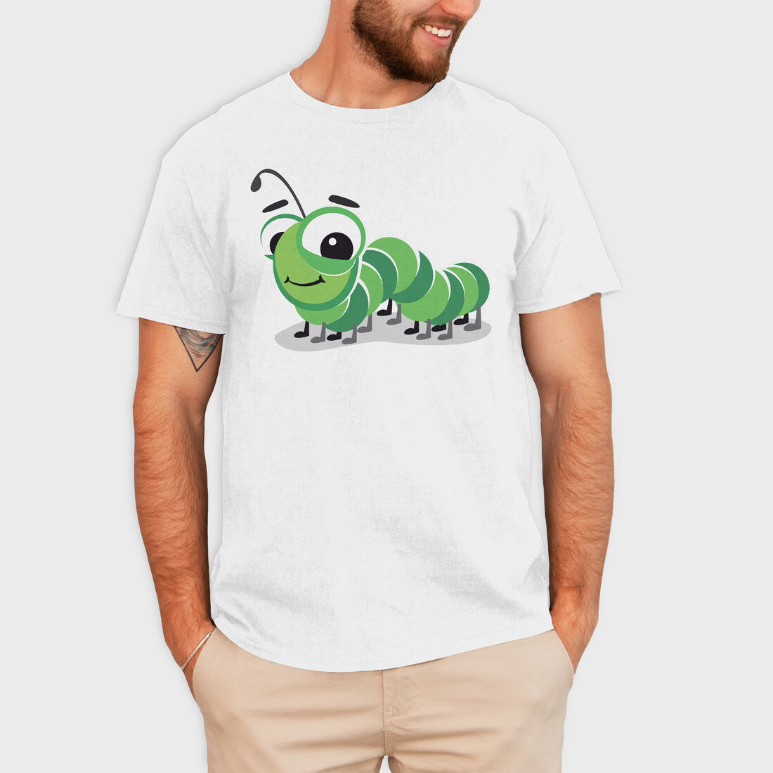 Green Caterpillar Smile, Tricou Barbati (Unisex)