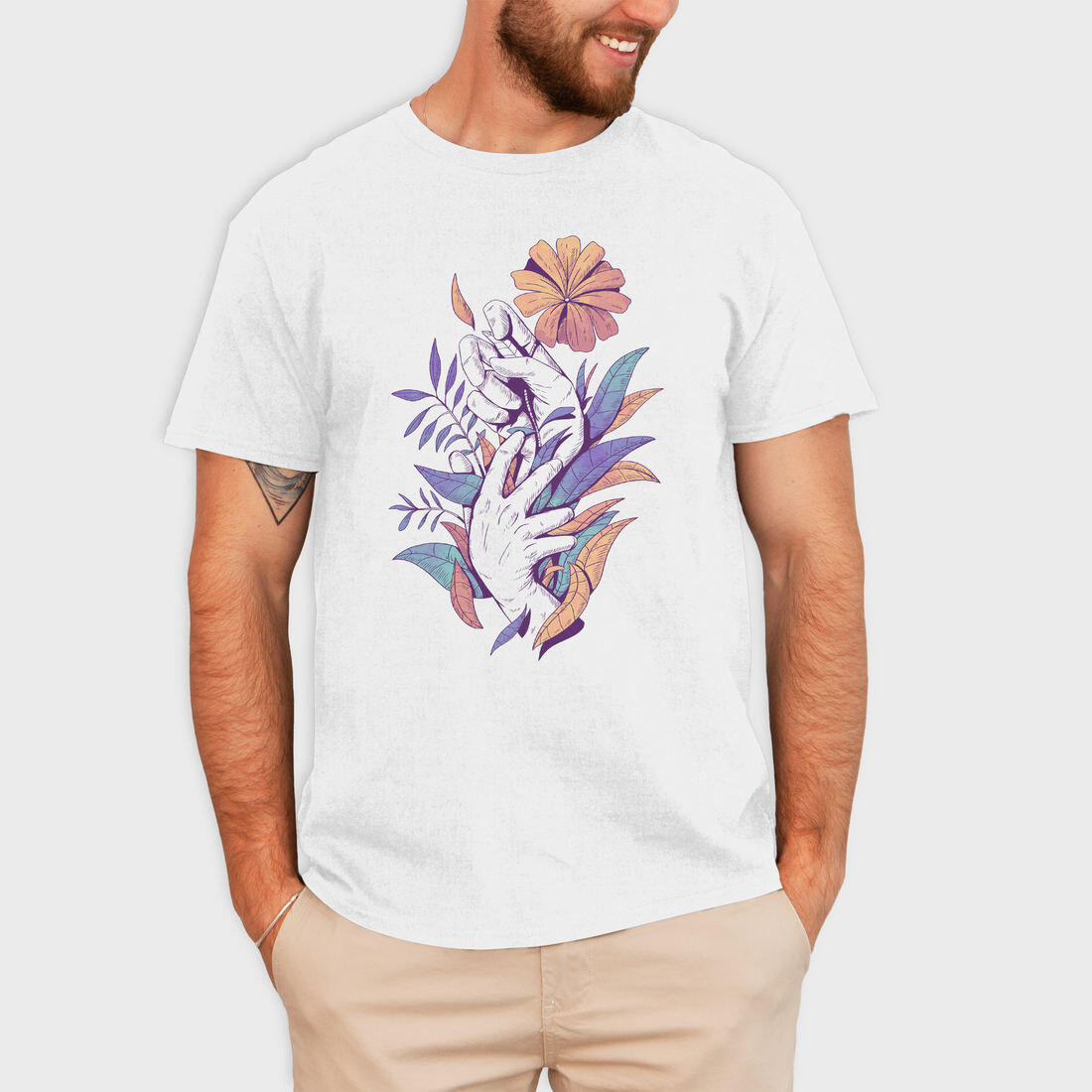Hands Holding Leaves And Flowers Plants 08, Tricou Barbati (Unisex)