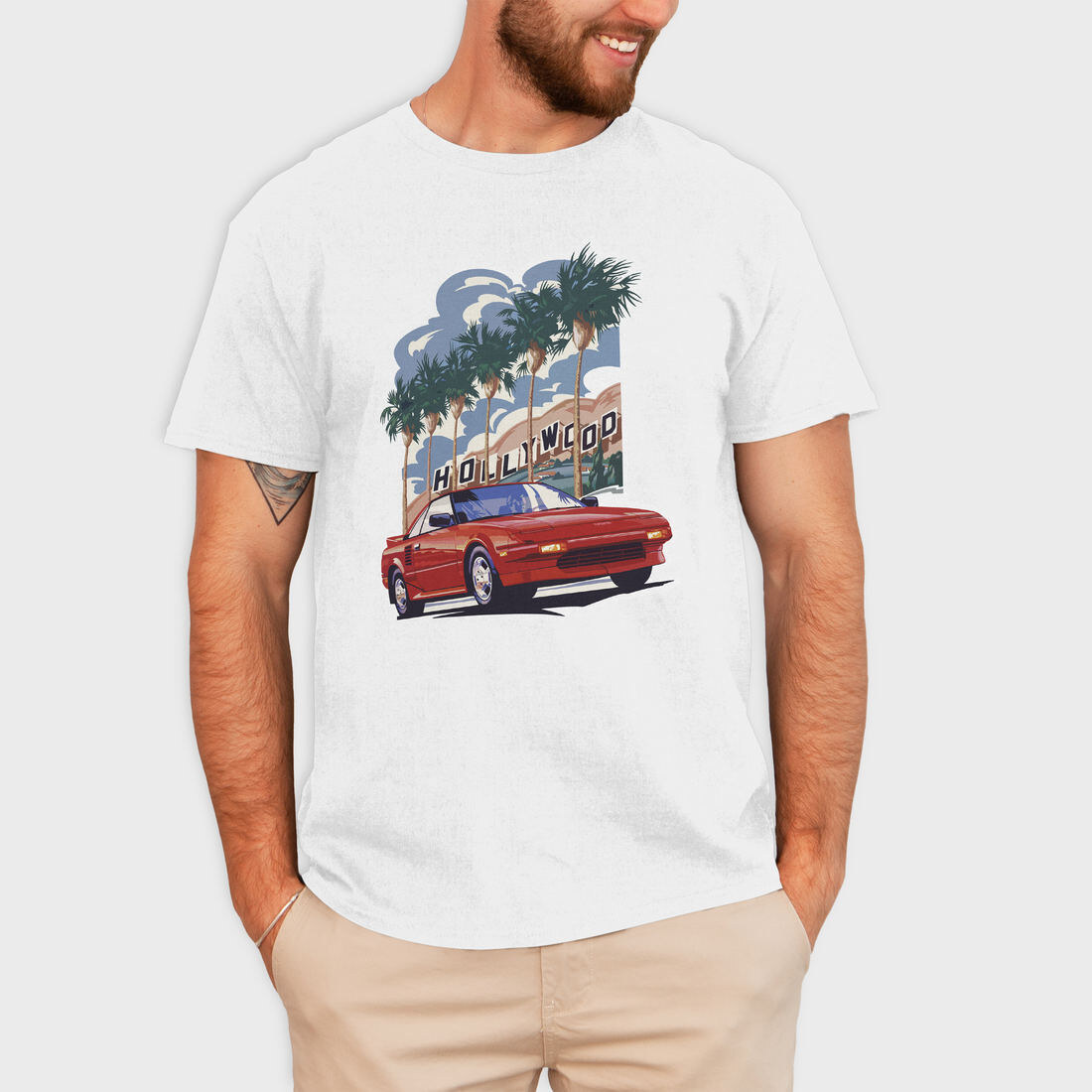 Hollywood Red Car Palm Tree Modern, Tricou Barbati (Unisex)