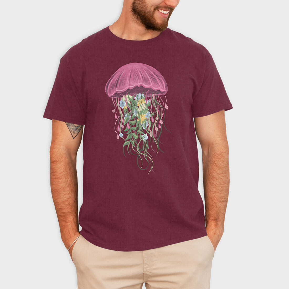 Jellyfish and Flowers, Tricou Barbati (Unisex)