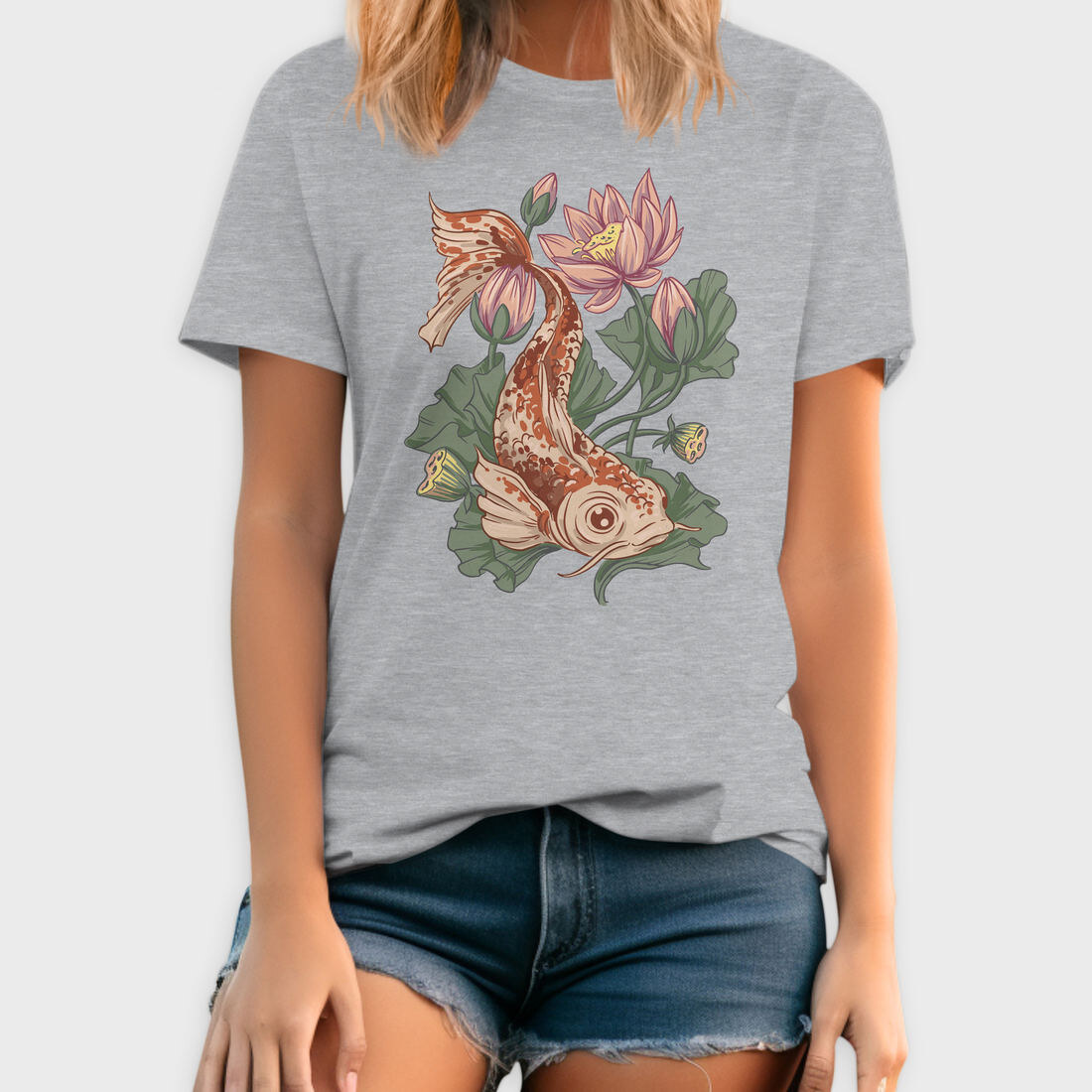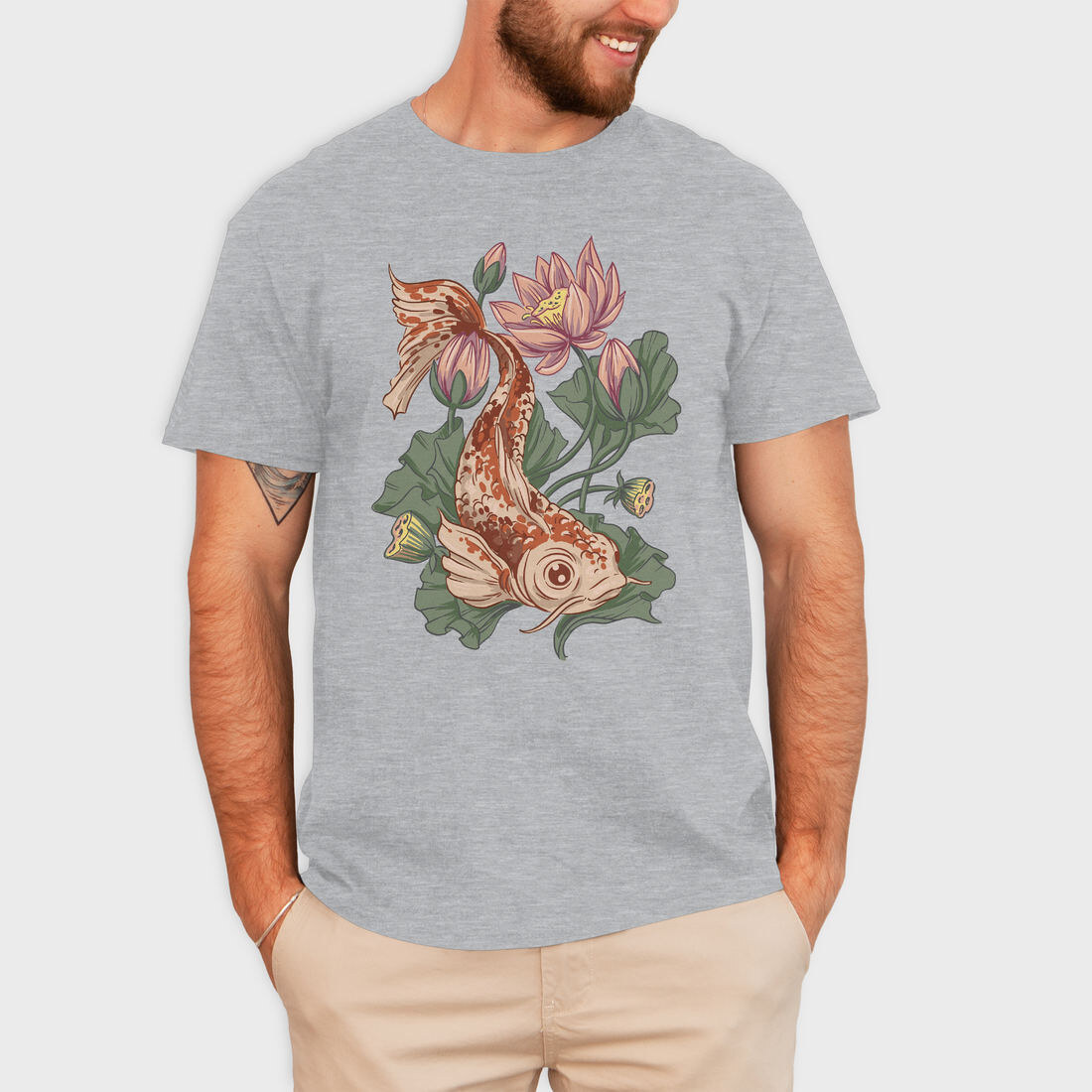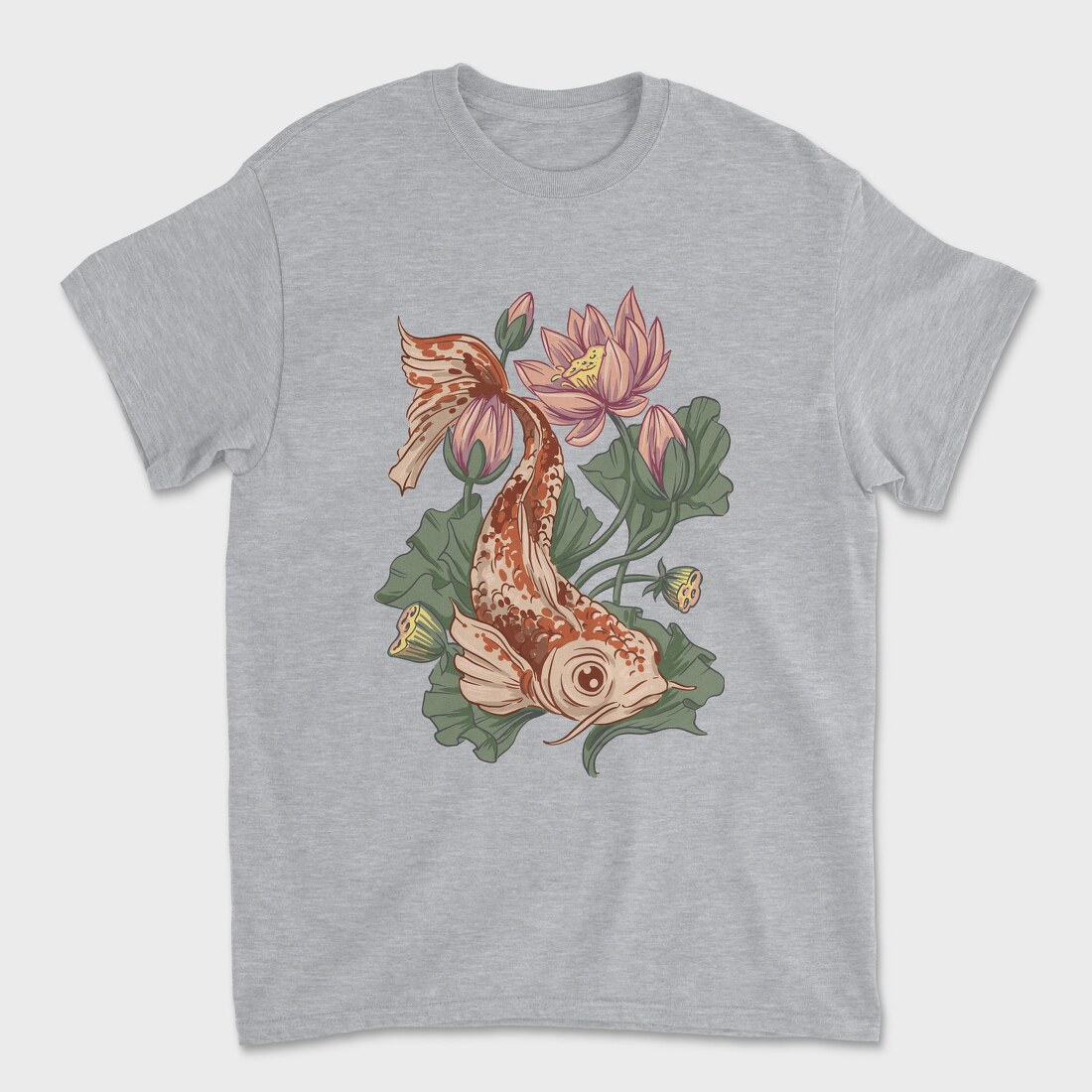 Koi Fish Lotus Illustration 04, Tricou Barbati (Unisex)