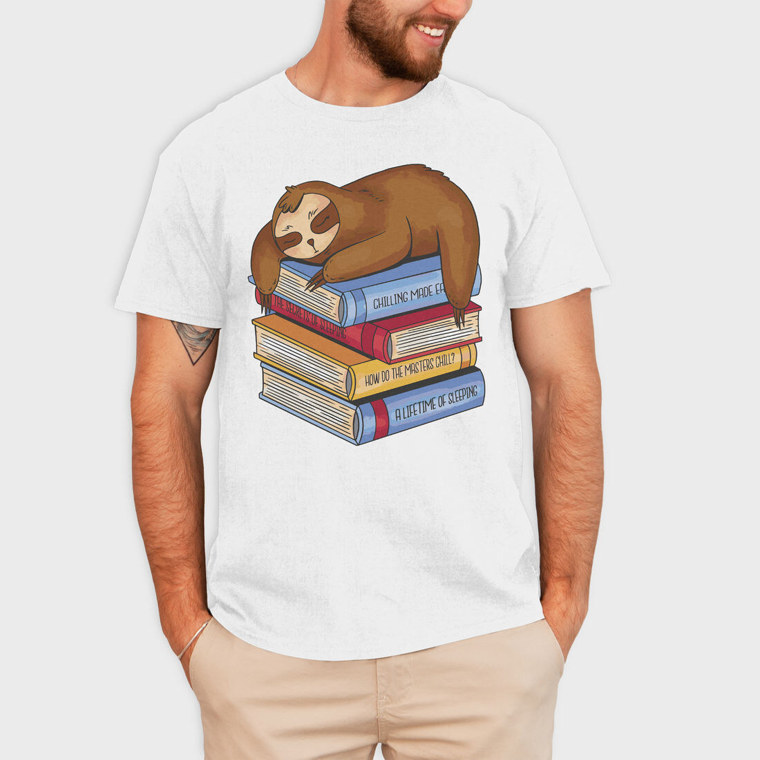 Librarian Sloth Sleeping Books, Tricou Barbati (Unisex)