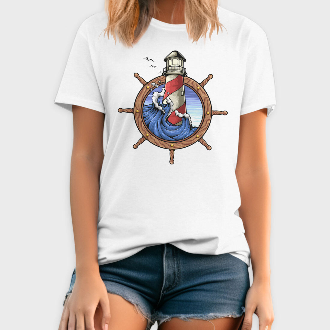 Lighthouse Storm Ship Wheel, Tricou Barbati (Unisex)