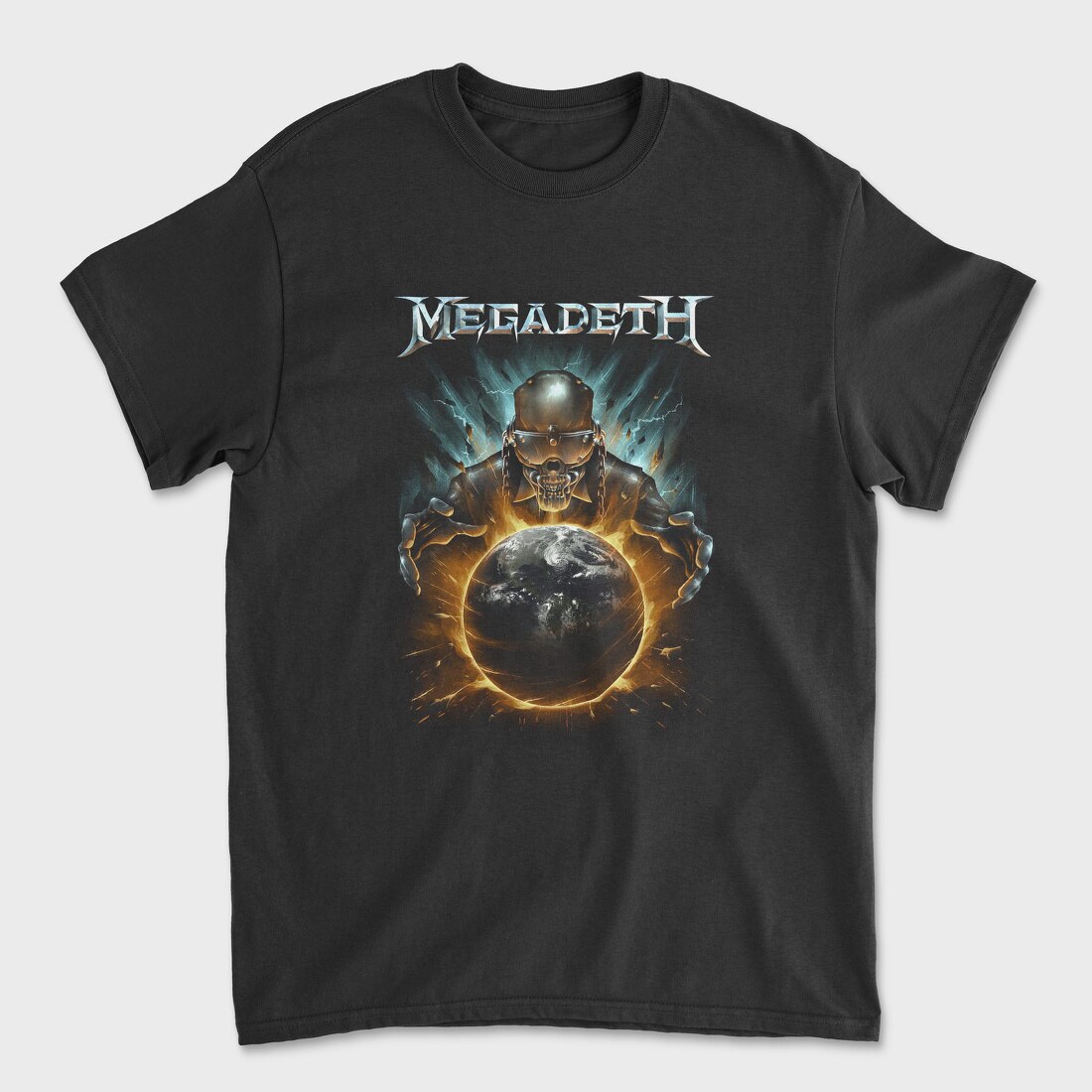 Megadeth Skull Planet Flames, Tricou Barbati (Unisex)