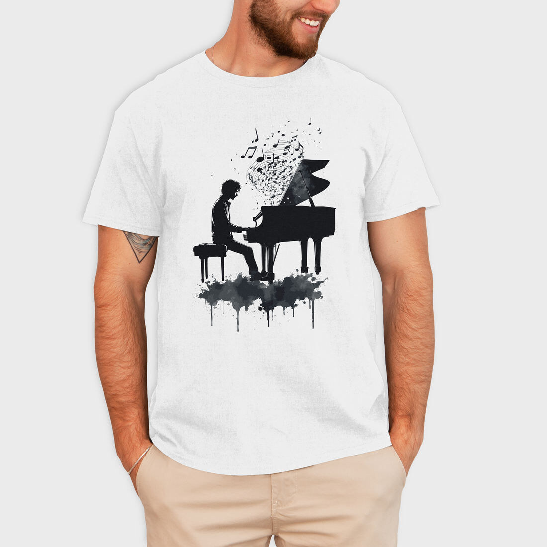 Piano Man Silhouette Grunge, Tricou Barbati (Unisex)