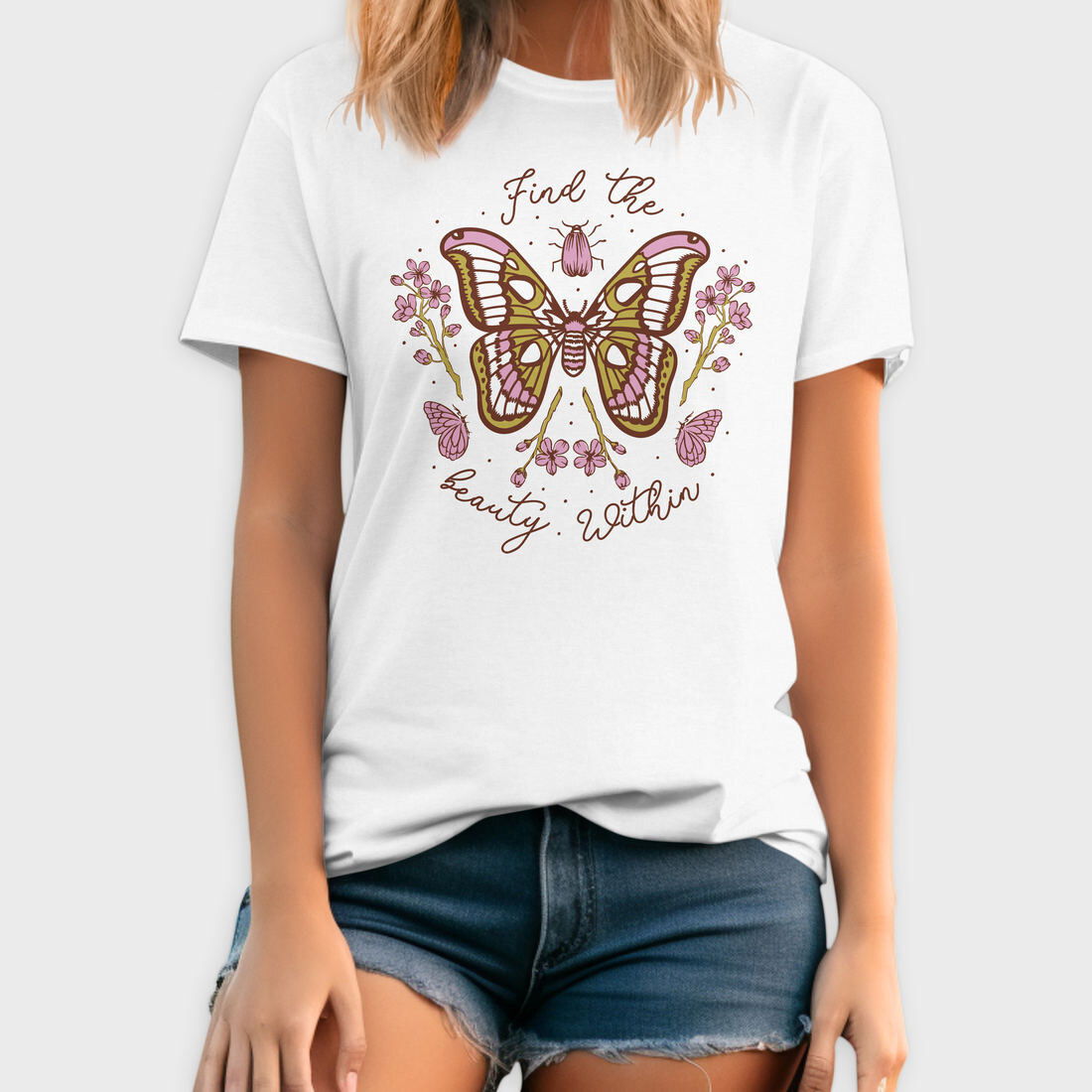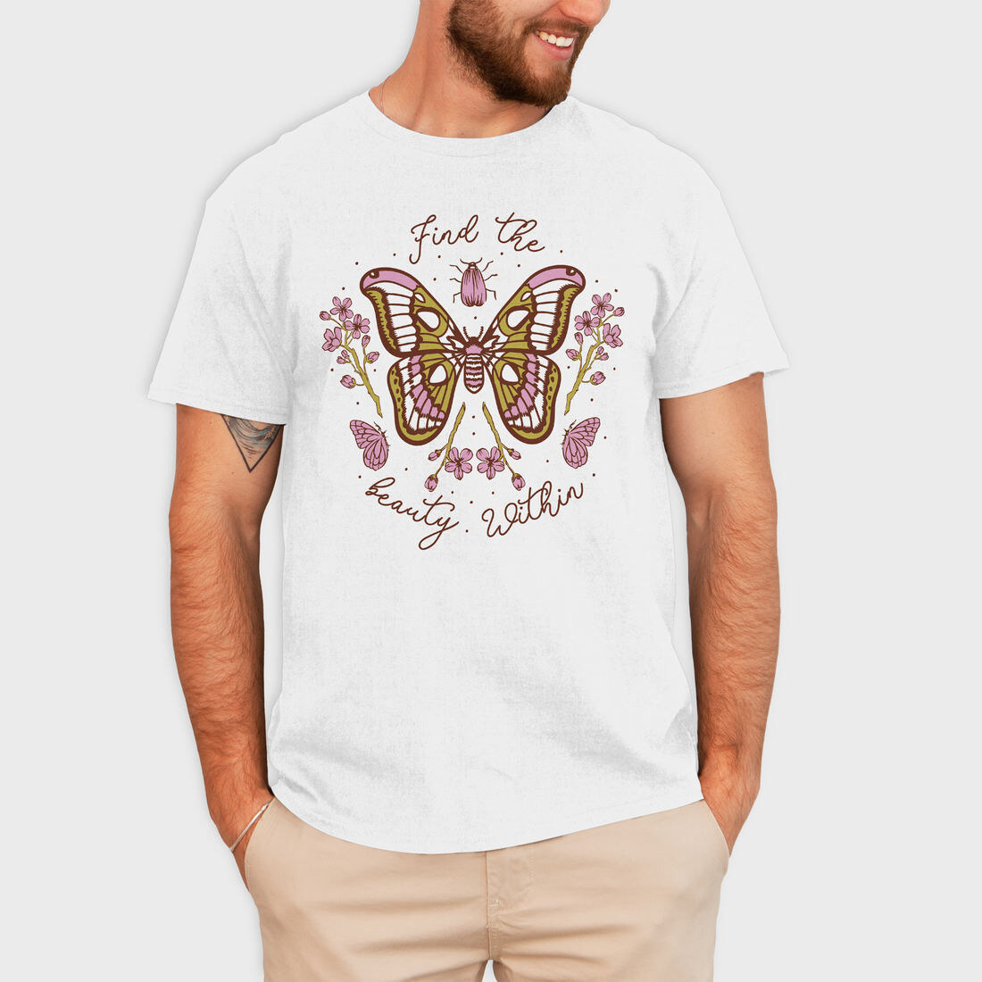 Pink Butterfly And Flowers Beauty Within, Tricou Barbati (Unisex)