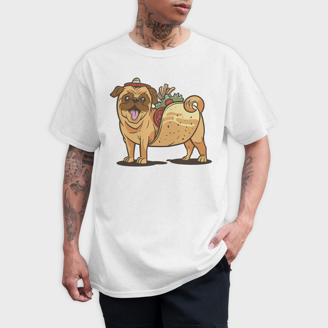 Pug Dog Animal Mexican Taco Cartoon, Tricou Barbati (Unisex)