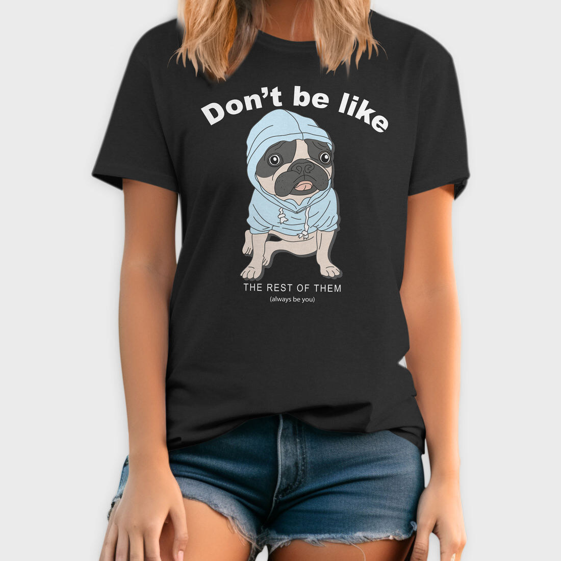 Pug In Blue Hoodie, Tricou Barbati (Unisex)