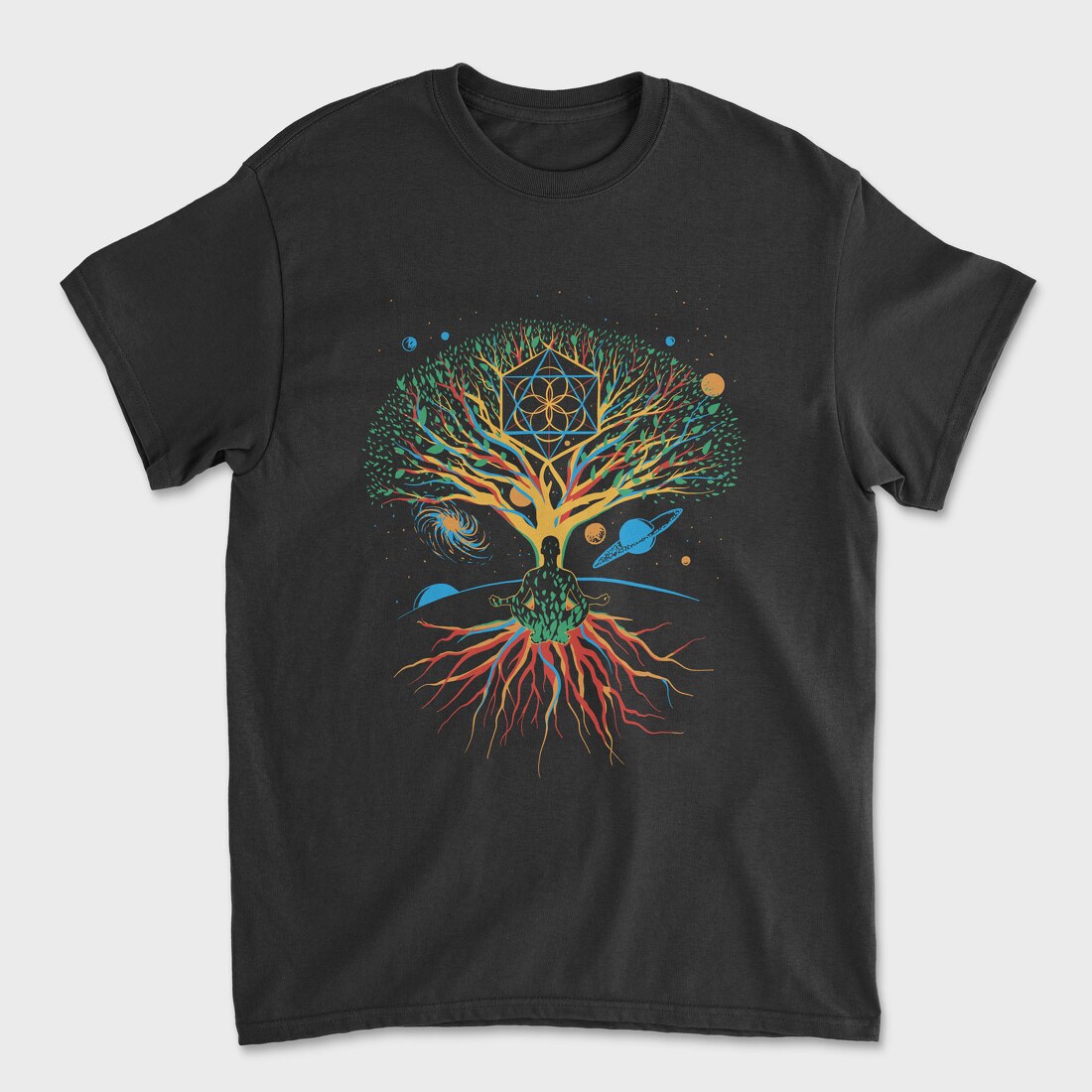 Sacred Geometry Meditating Colorful Magical Tree, Tricou Barbati (Unisex)
