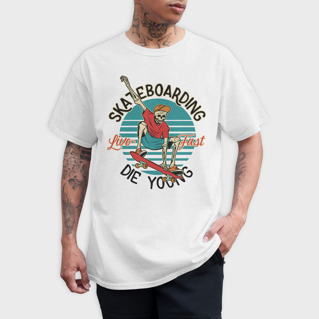 Skateboarding Skeleton, Tricou Barbati (Unisex)