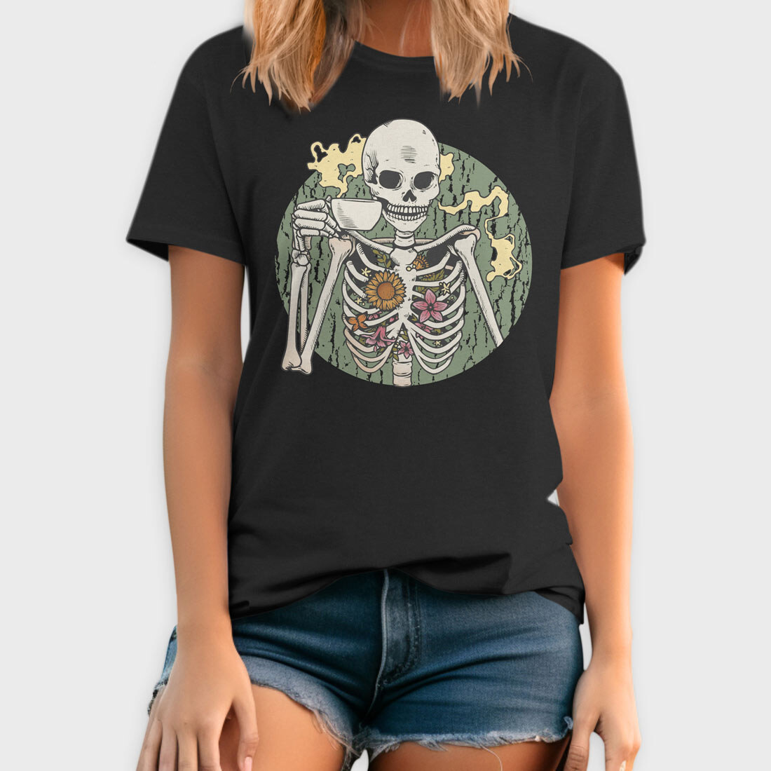 Skeleton With Coffee, Tricou Barbati (Unisex)