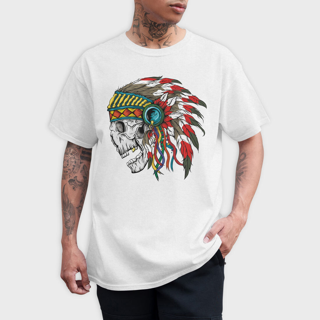 Skull Chief Feathers, Tricou Barbati (Unisex)