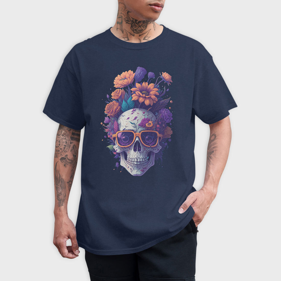Skull Flowers Glasses, Tricou Barbati (Unisex)