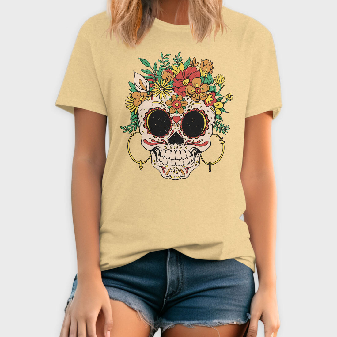 Skull Traditional Flowers, Tricou Barbati (Unisex)