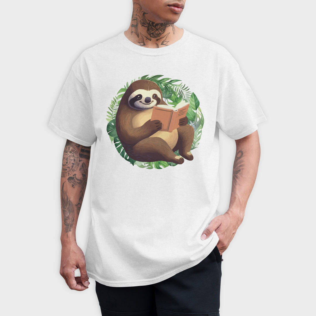 Sloth Reading Book, Tricou Barbati (Unisex)