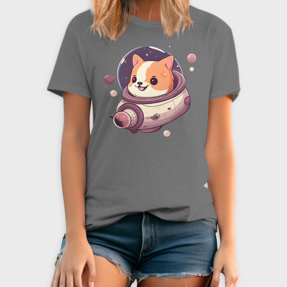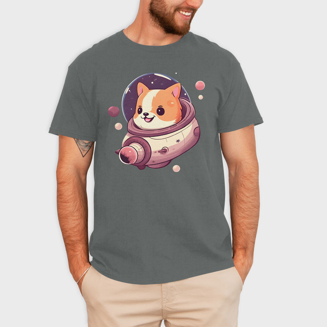 Space Faring Dog Illustration Spaceship, Tricou Barbati (Unisex)
