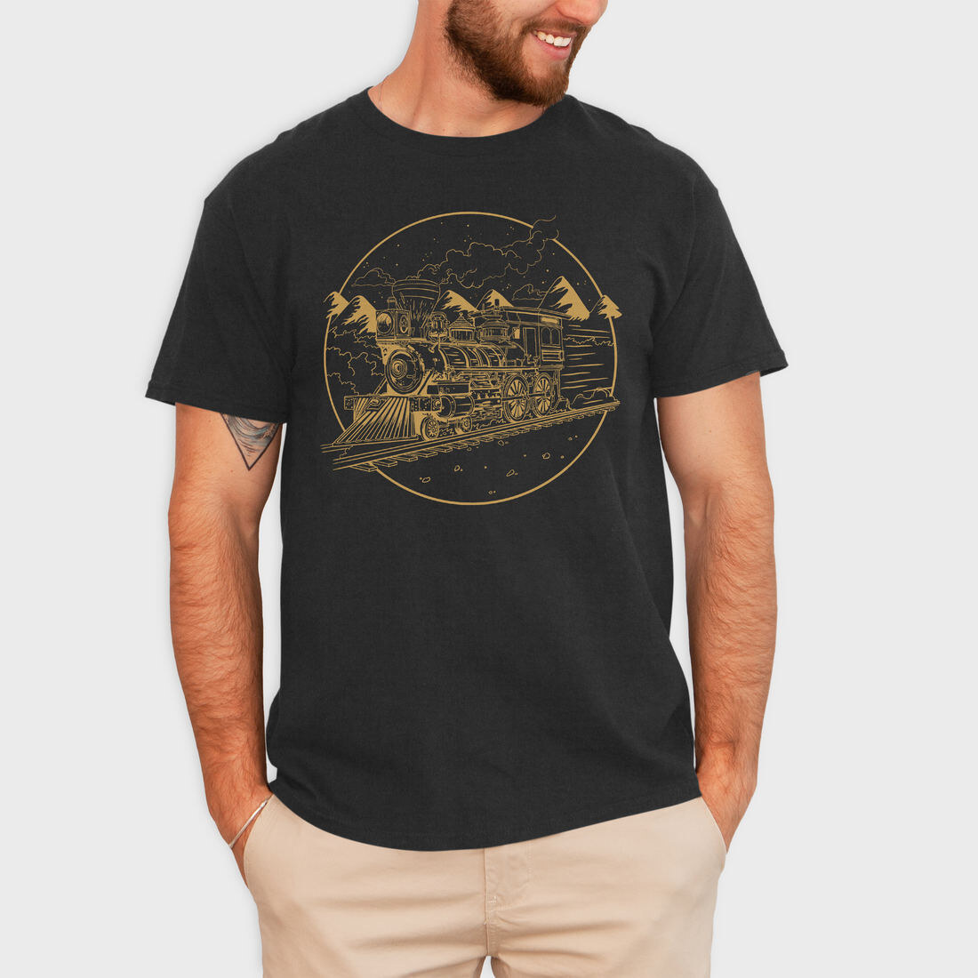 Steam Train Hand Drawn Locomotiv, Tricou Barbati (Unisex)