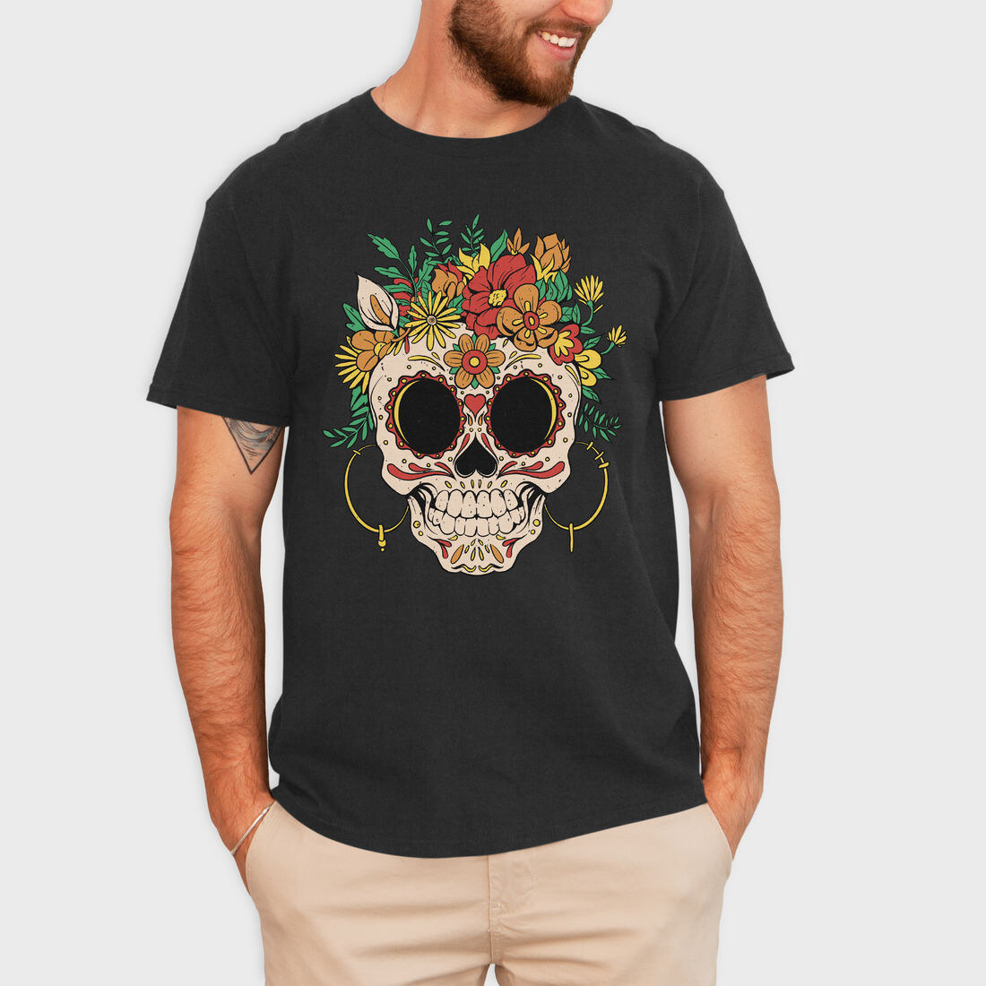 Sugar Skull And Flowers Traditional, Tricou Barbati (Unisex)