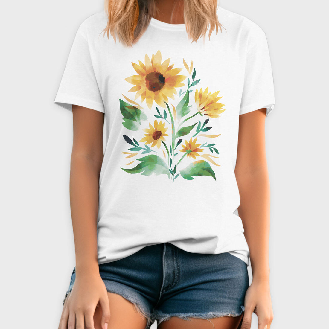 Sunflower Watercolor Flowers Leaves Tote, Tricou Barbati (Unisex)