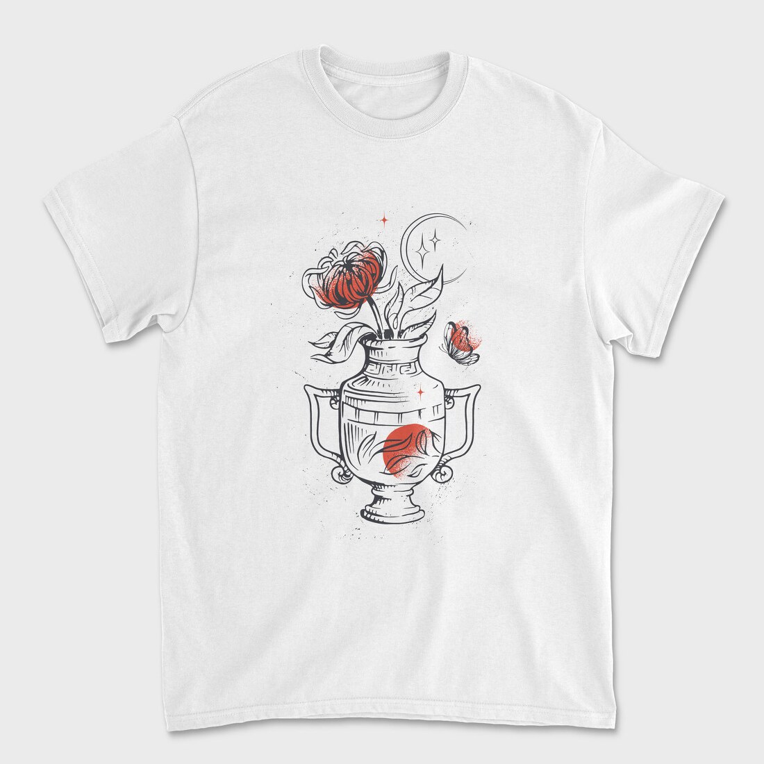 Tattoo Floral Vase Chrysanthemum Moon Red Black, Tricou Barbati (Unisex)