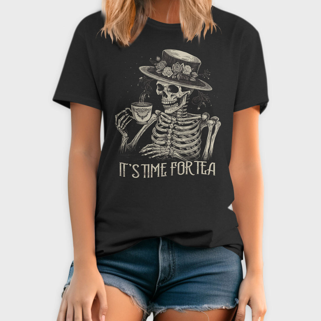 Tea Time Skeleton Grunge, Tricou Barbati (Unisex)
