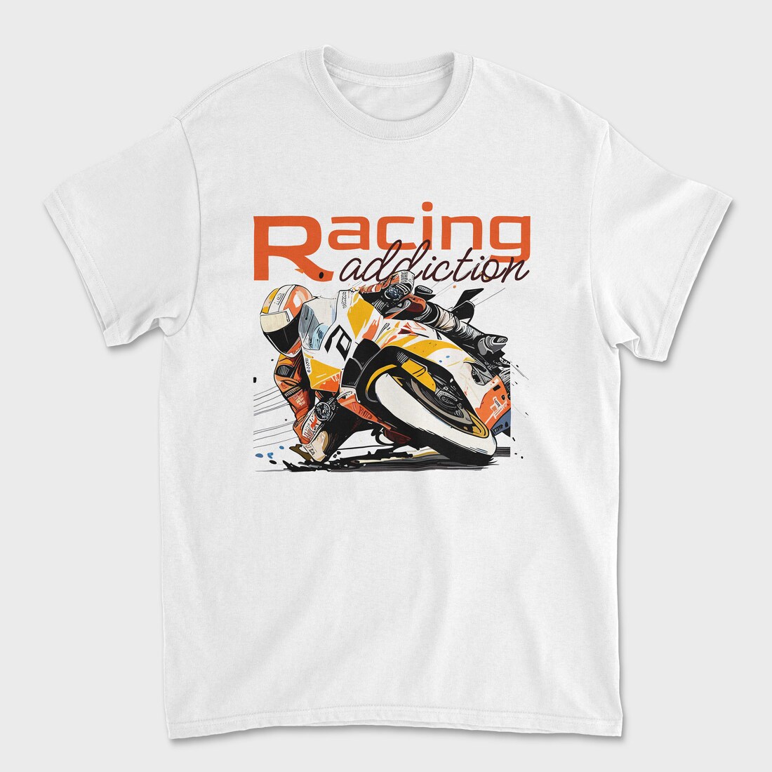 Tilted Competition Motorcycle With Rider Racing Addiction, Tricou Barbati (Unisex)
