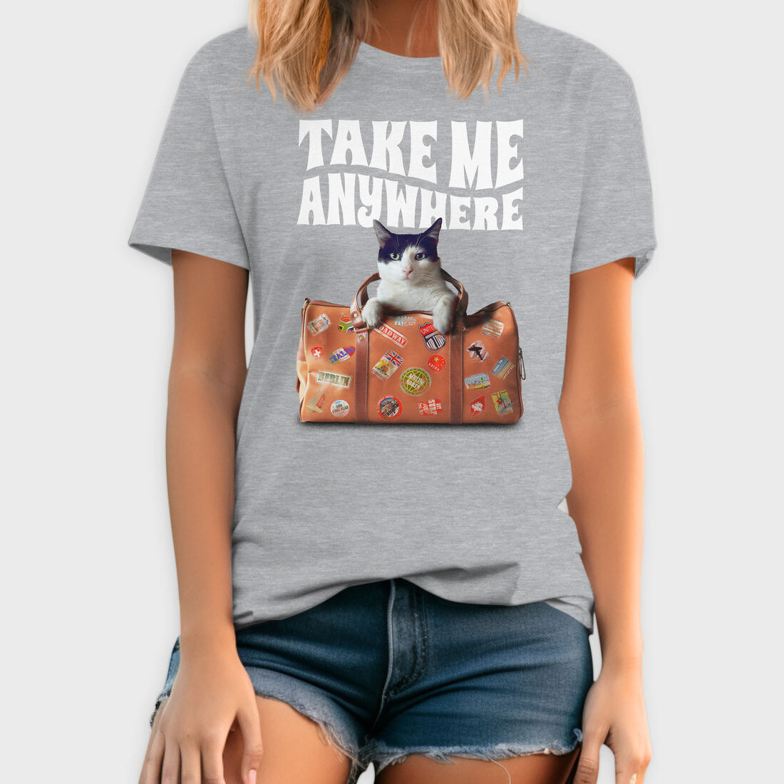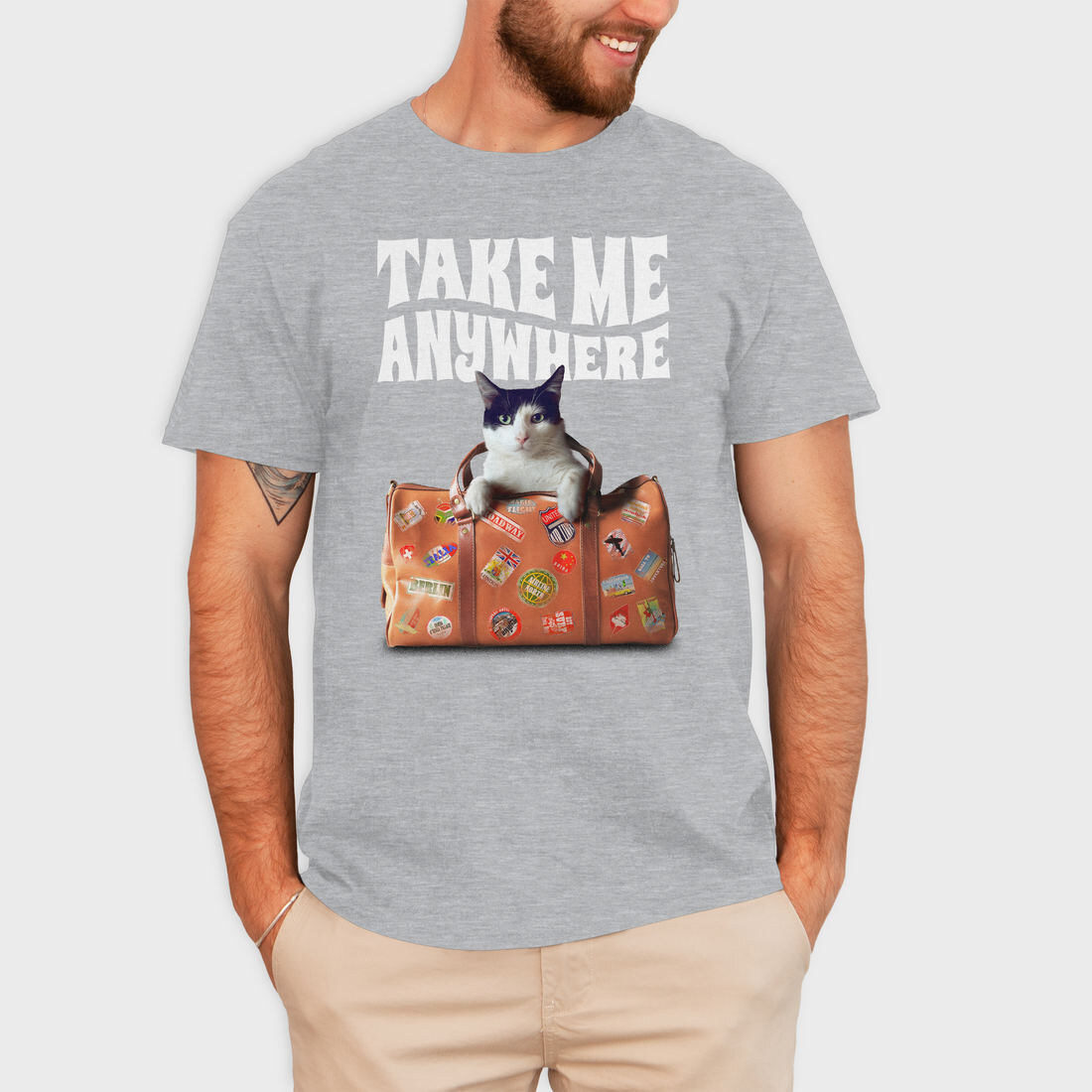 Travel Suitcase Cat Wanderlust, Tricou Barbati (Unisex)