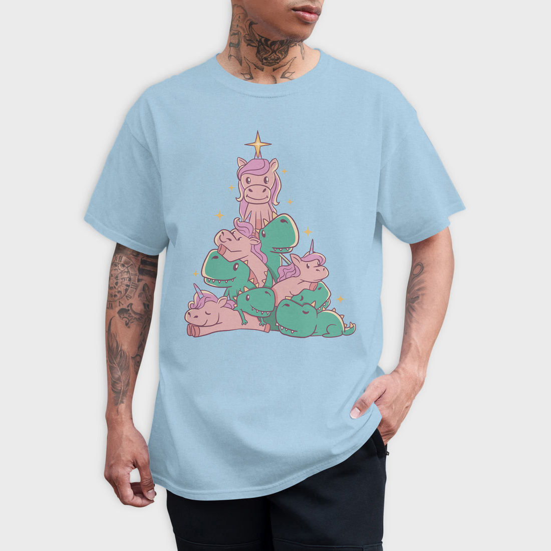 Unicorns And T Rex Christmas Tree, Tricou Barbati (Unisex)