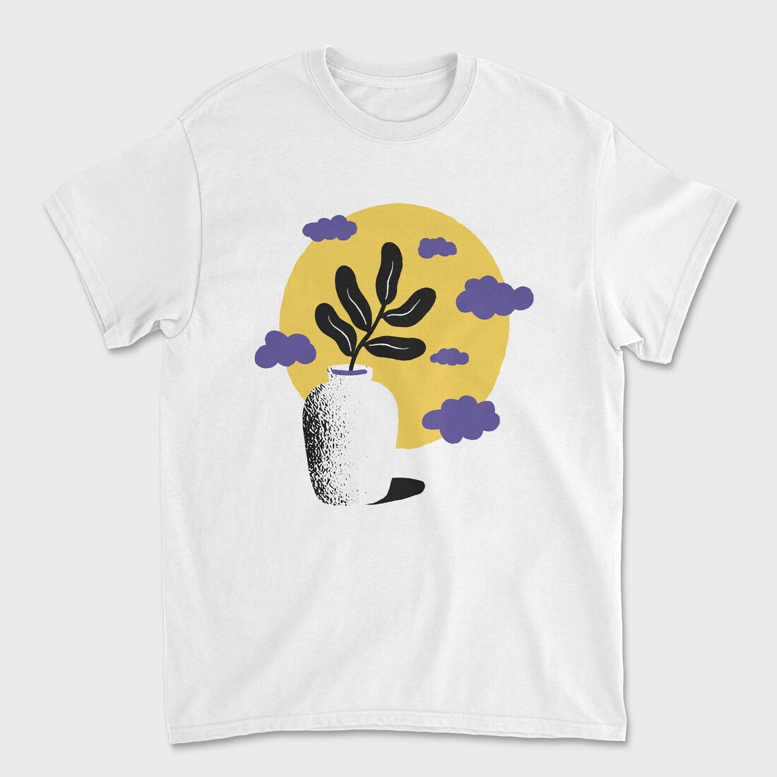Vase With Plant Nature Flat Clouds, Tricou Barbati (Unisex)