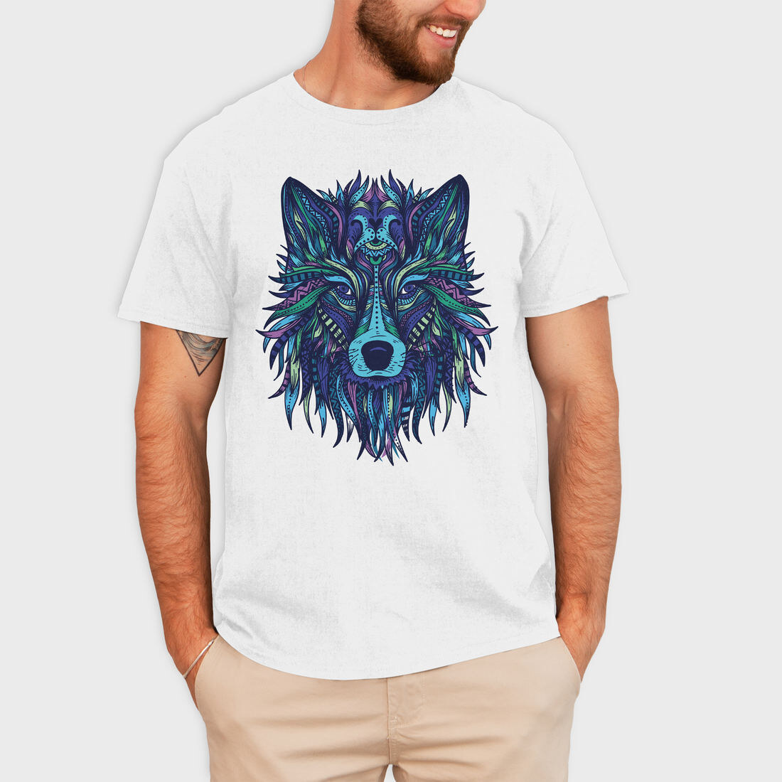 Wolf Illustration Color 001, Tricou Barbati (Unisex)