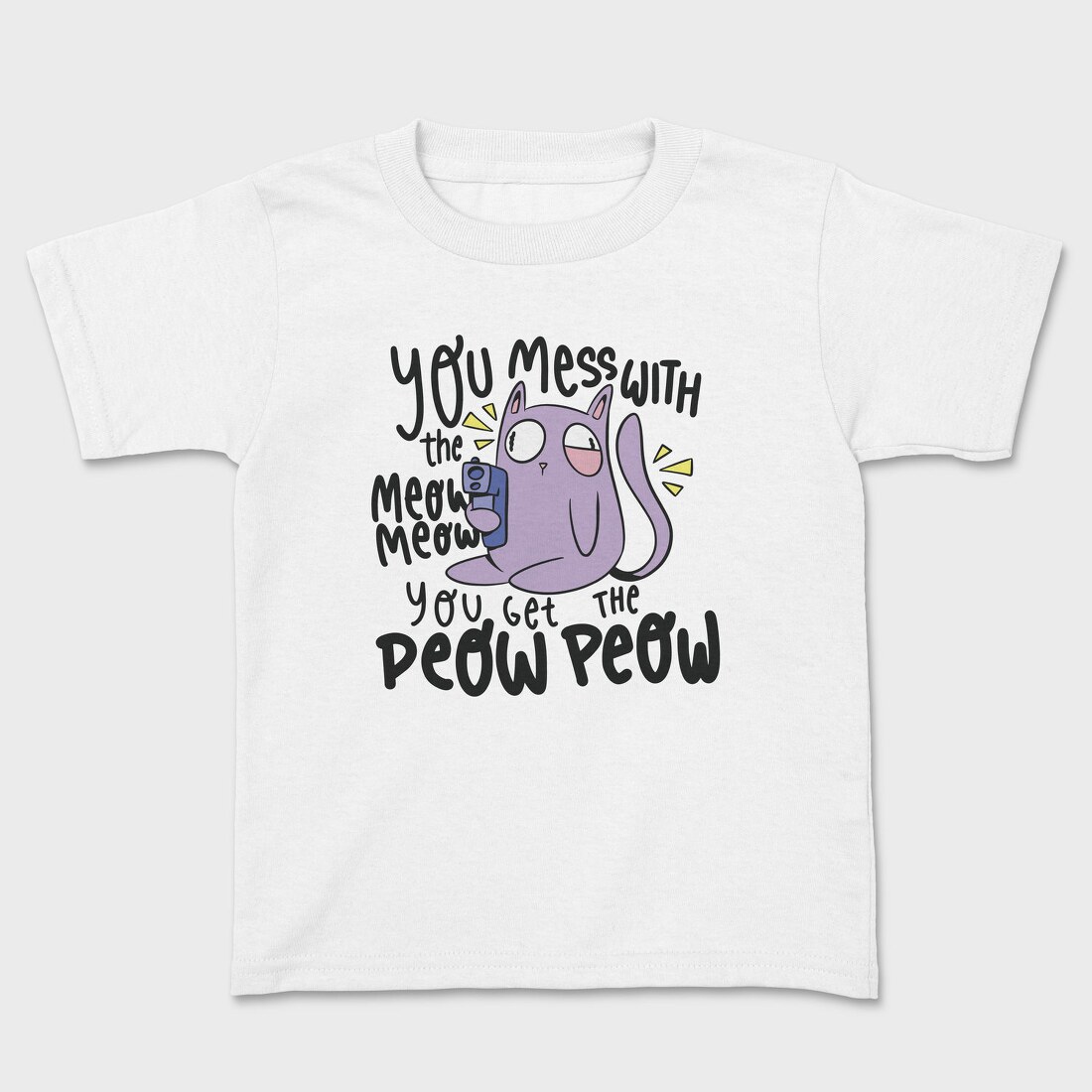 Cartoon Cat With Gun Meow Peow, Tricou Copii