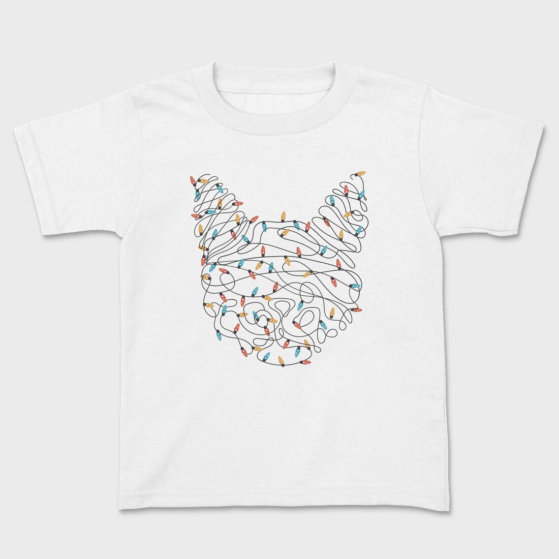 Cat Christmas Lights Silhouette With, Tricou Copii