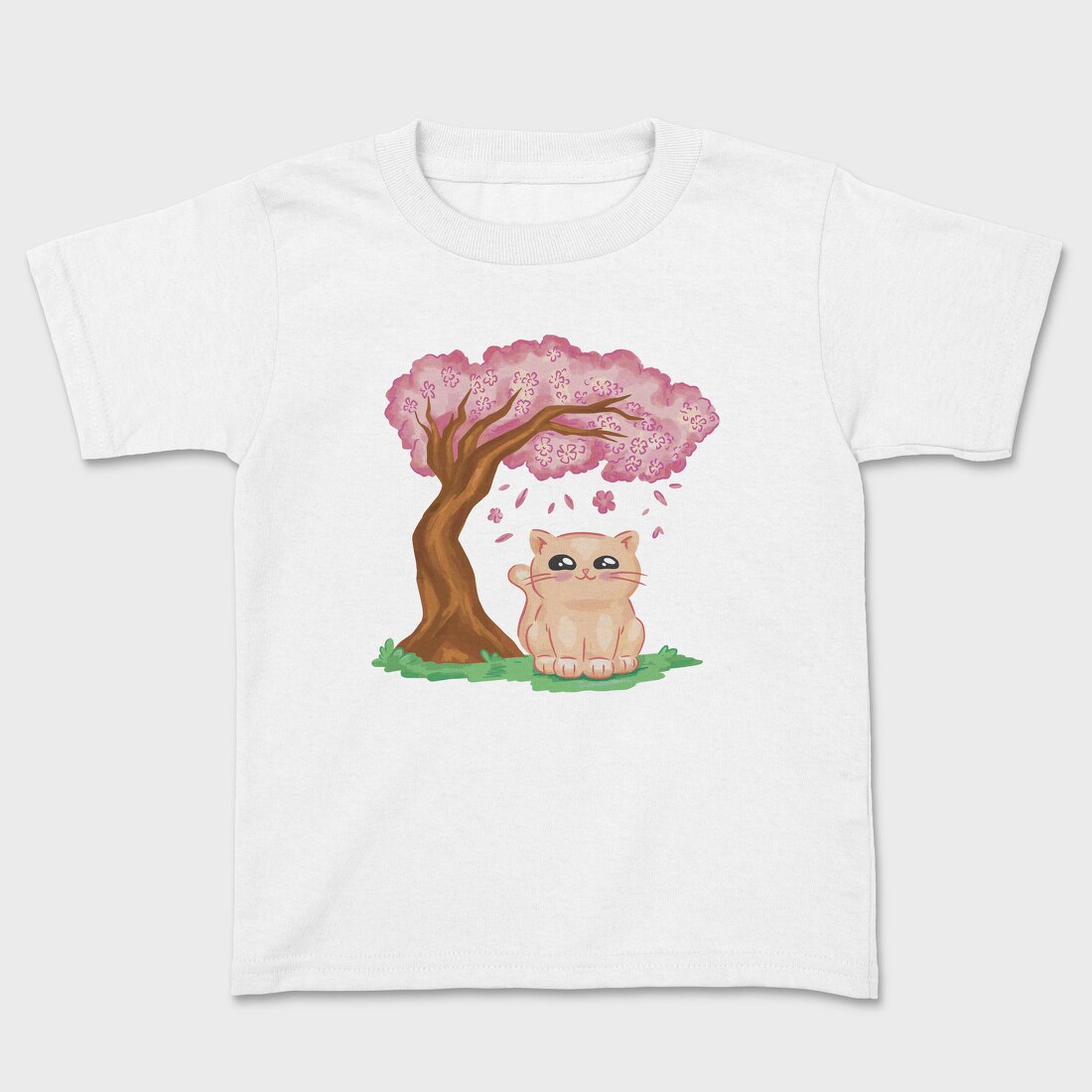Cherry Blossom Cat Kawaii Sakura And, Tricou Copii