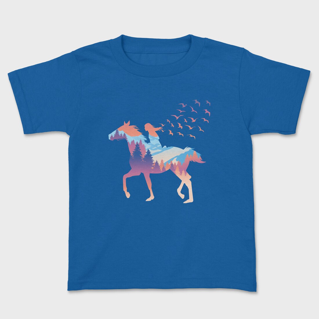 Girl And Horse Forest Winter Landscape, Tricou Copii