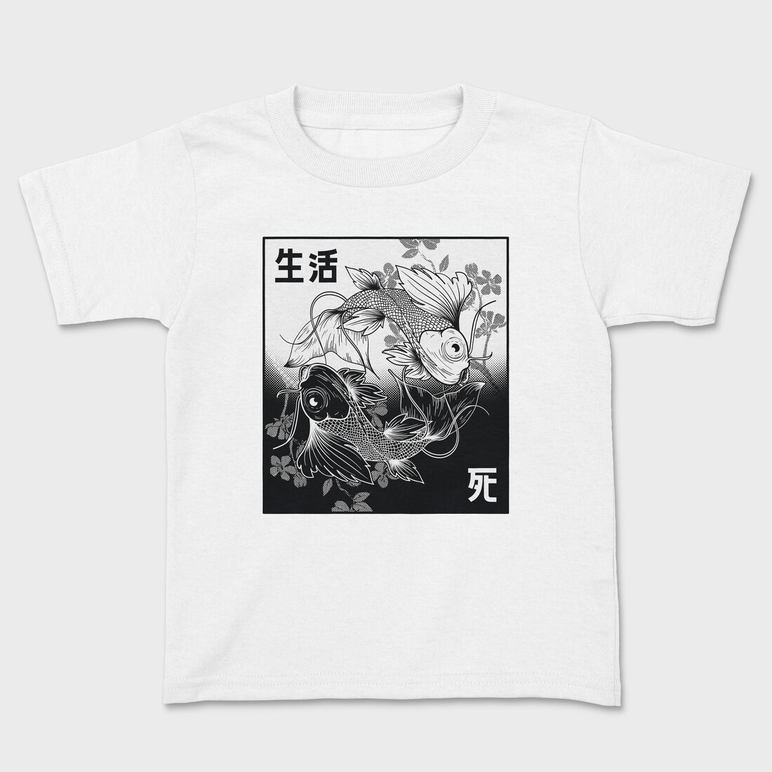 Koi Yin Yang Life Death Hand Drawn, Tricou Copii