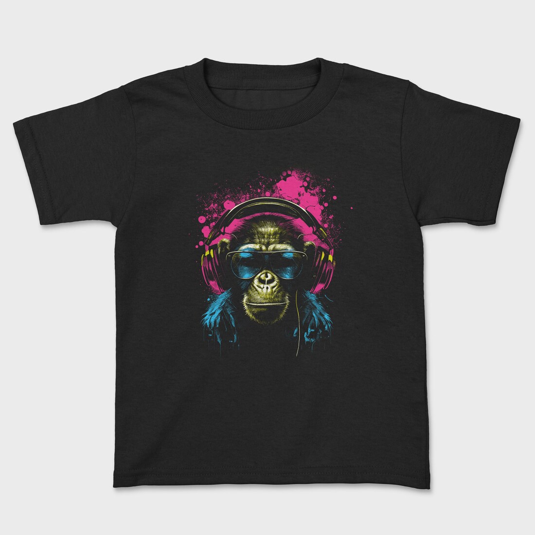 Monkey Headphones Portrait, Tricou Copii