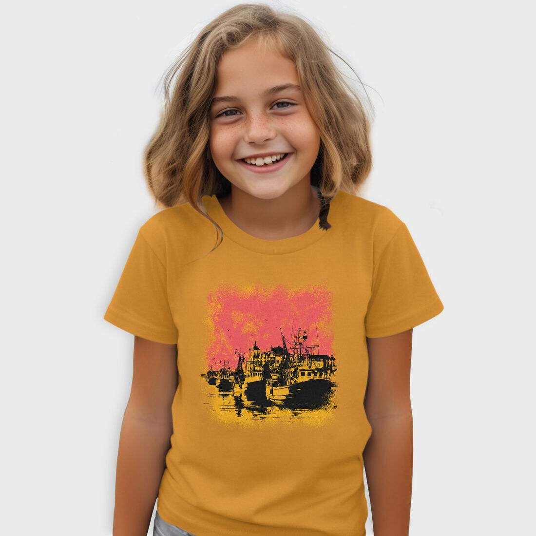 Port With Ships And Boats Sight Seen, Tricou Copii