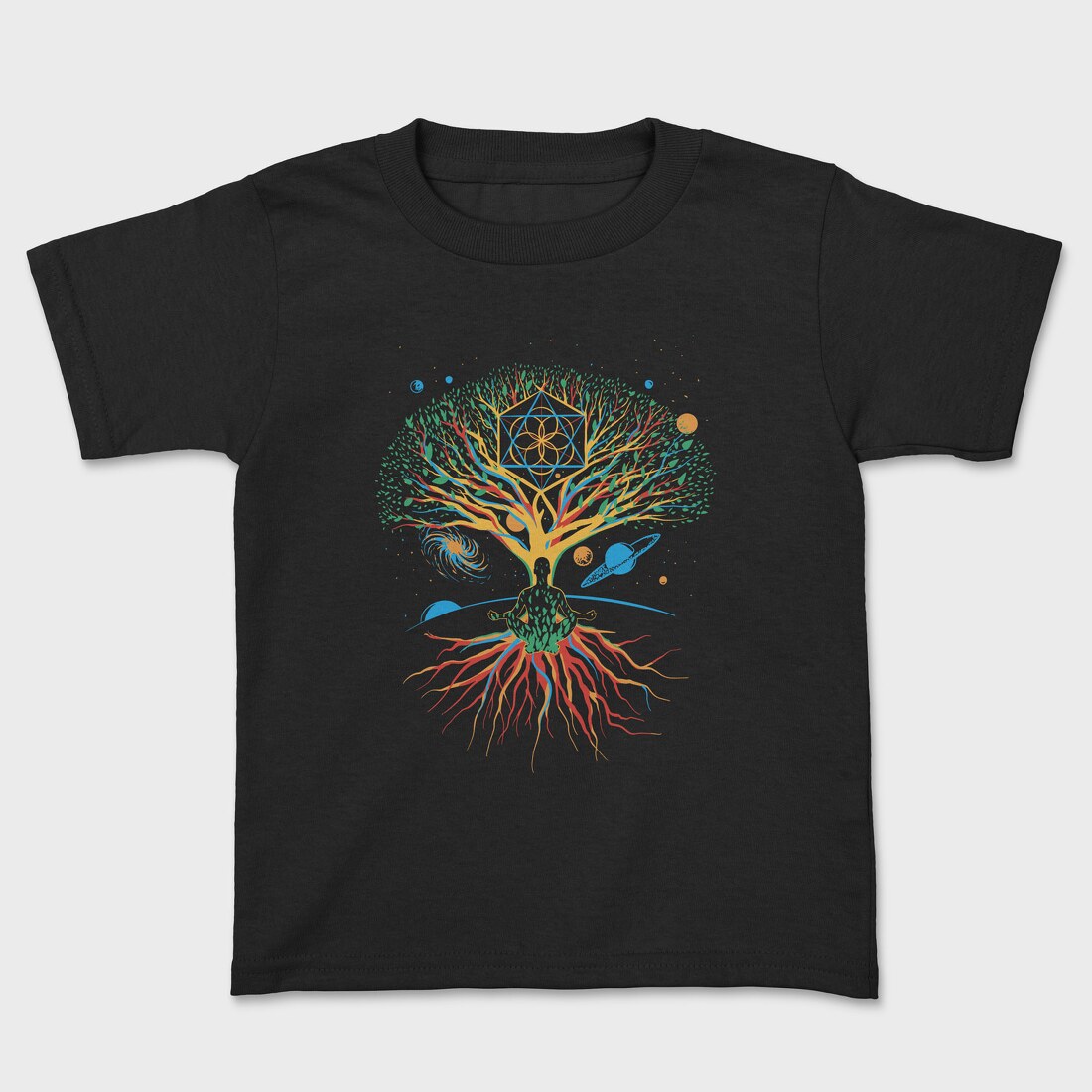 Sacred Geometry Meditating Colorful Magical Tree, Tricou Copii