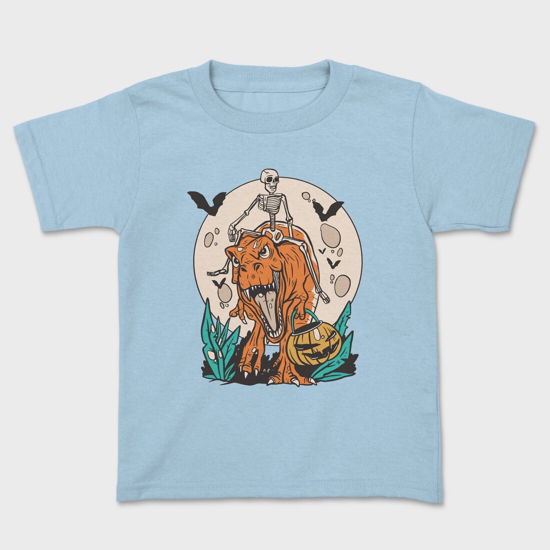 Skeleton Riding T Rex With Pumpkin, Tricou Copii