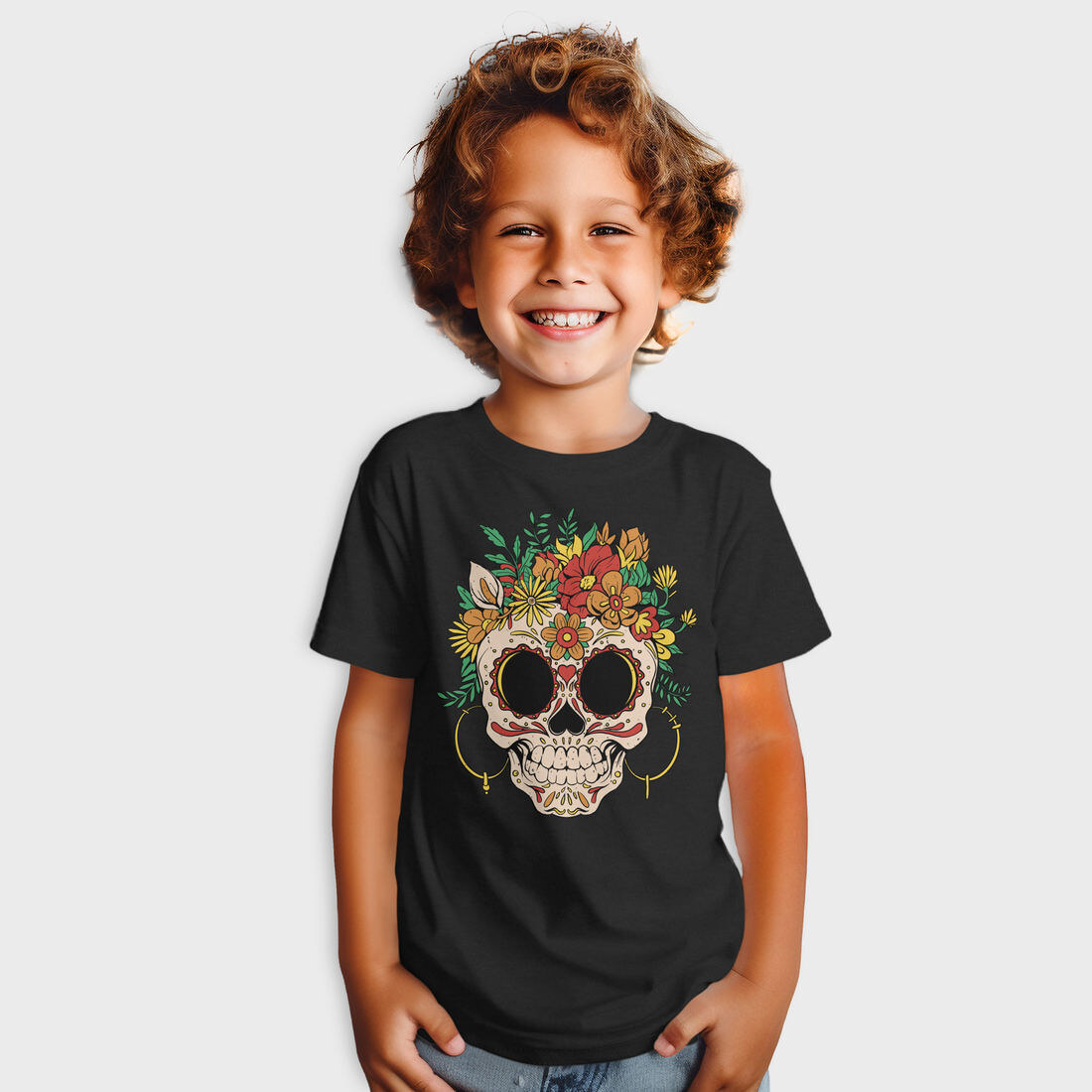 Sugar Skull And Flowers Traditional, Tricou Copii