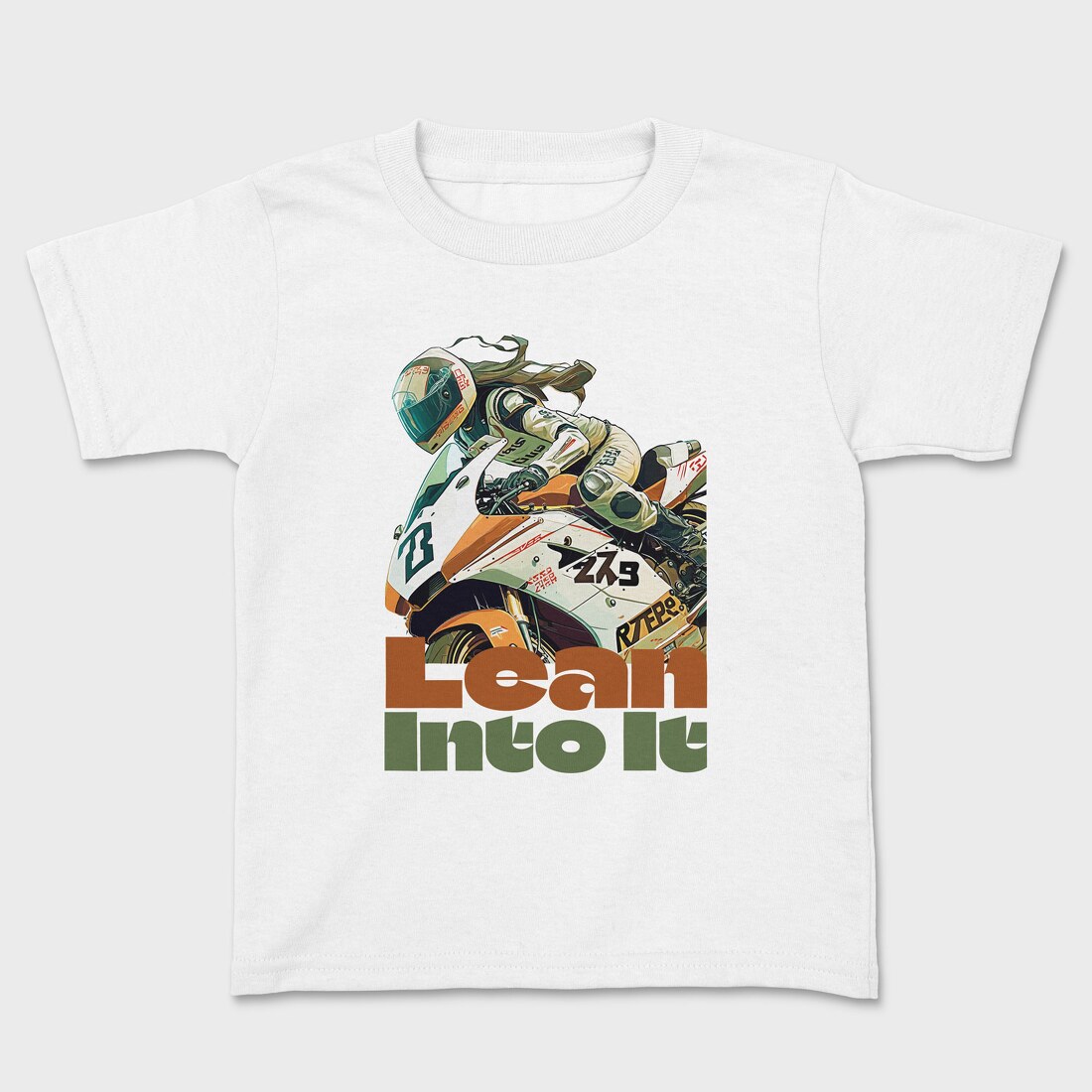 Tilted Competition Motorcycle With Rider Lean Into It, Tricou Copii