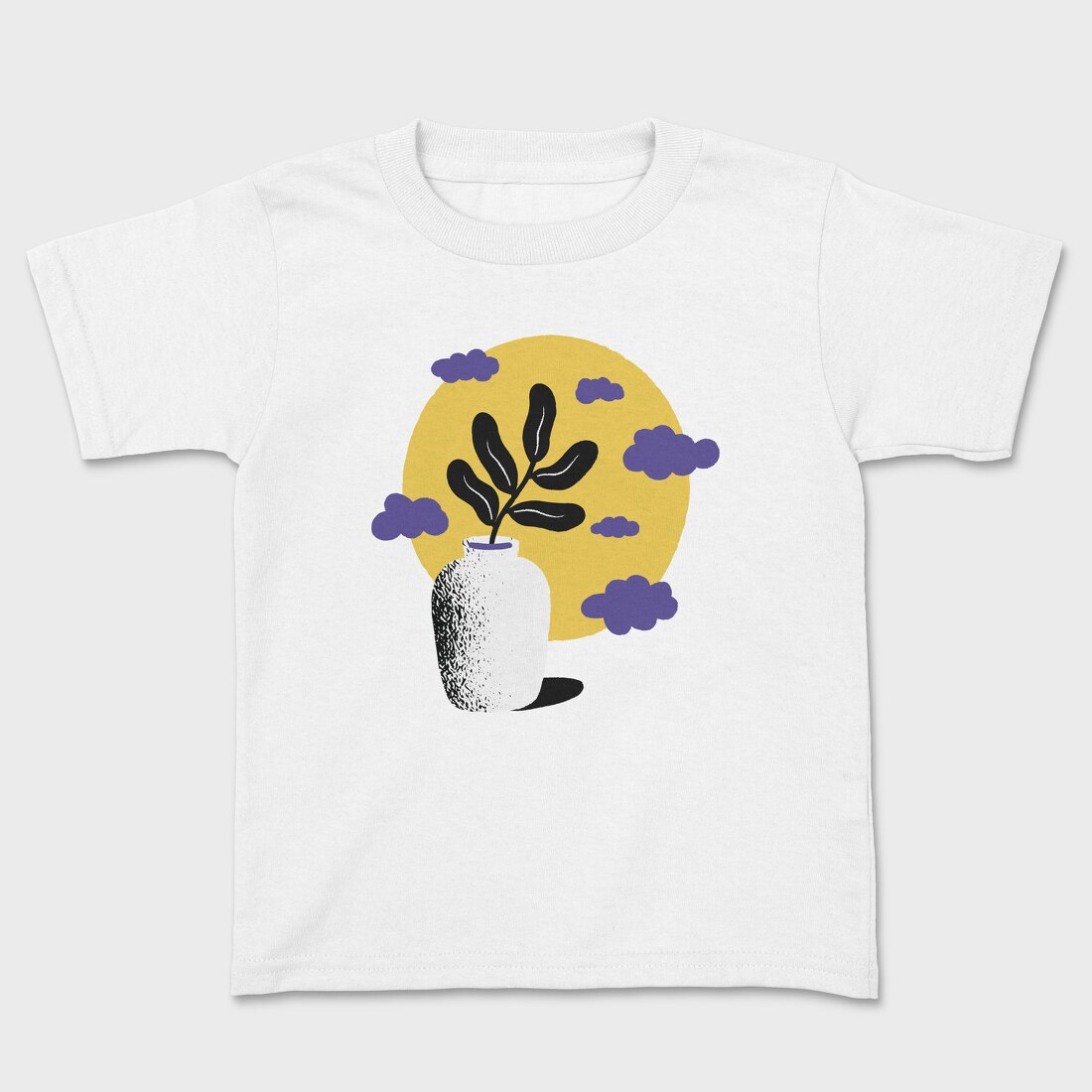 Vase With Plant Nature Flat Clouds, Tricou Copii