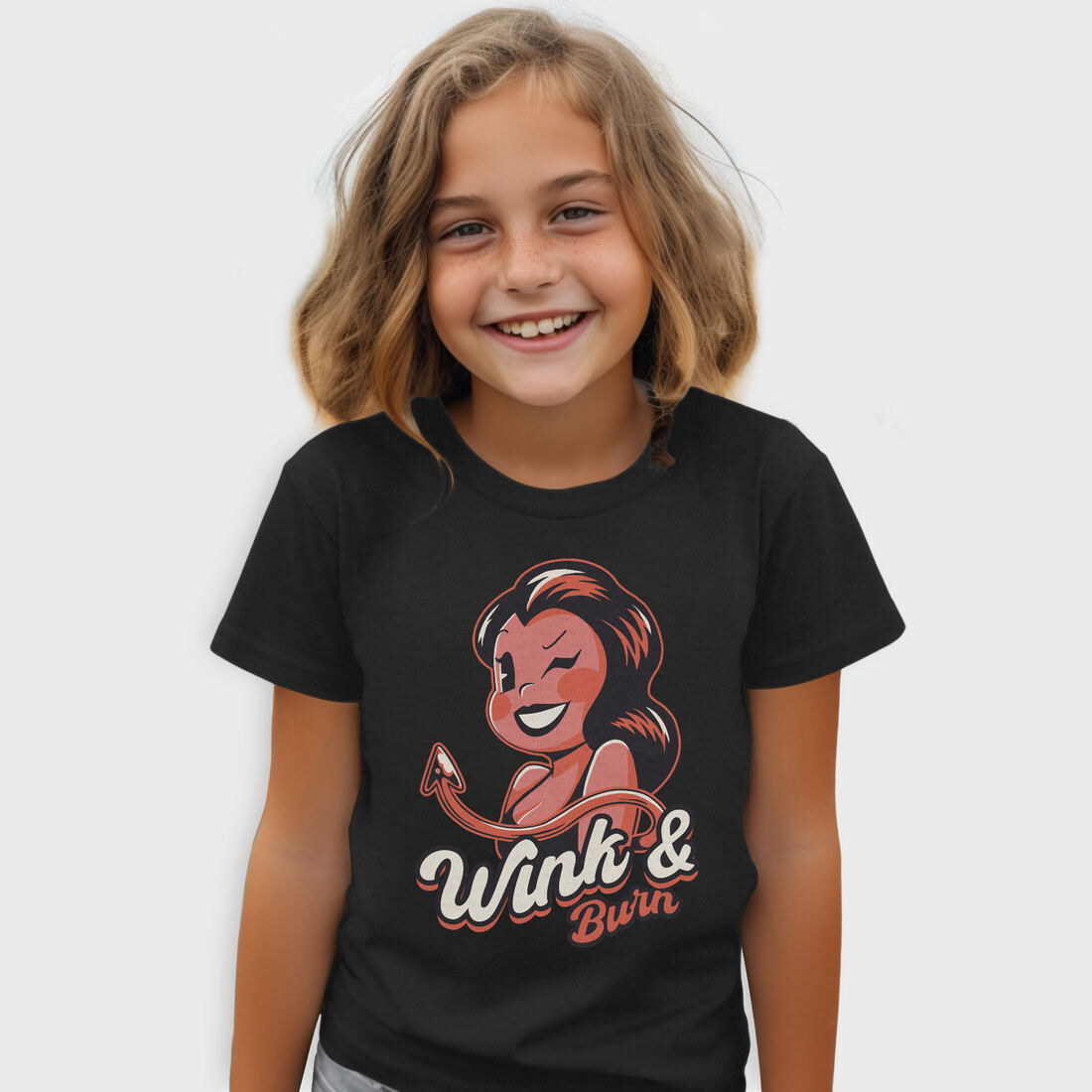 Winking Devil Pun Cartoon Girl Halloween, Tricou Copii