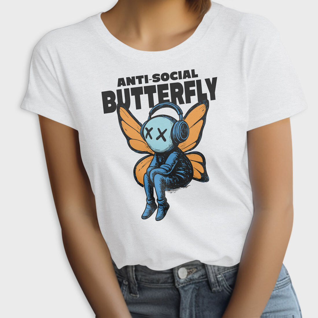 Anti Social Butterfly With Headphones, Tricou Femei