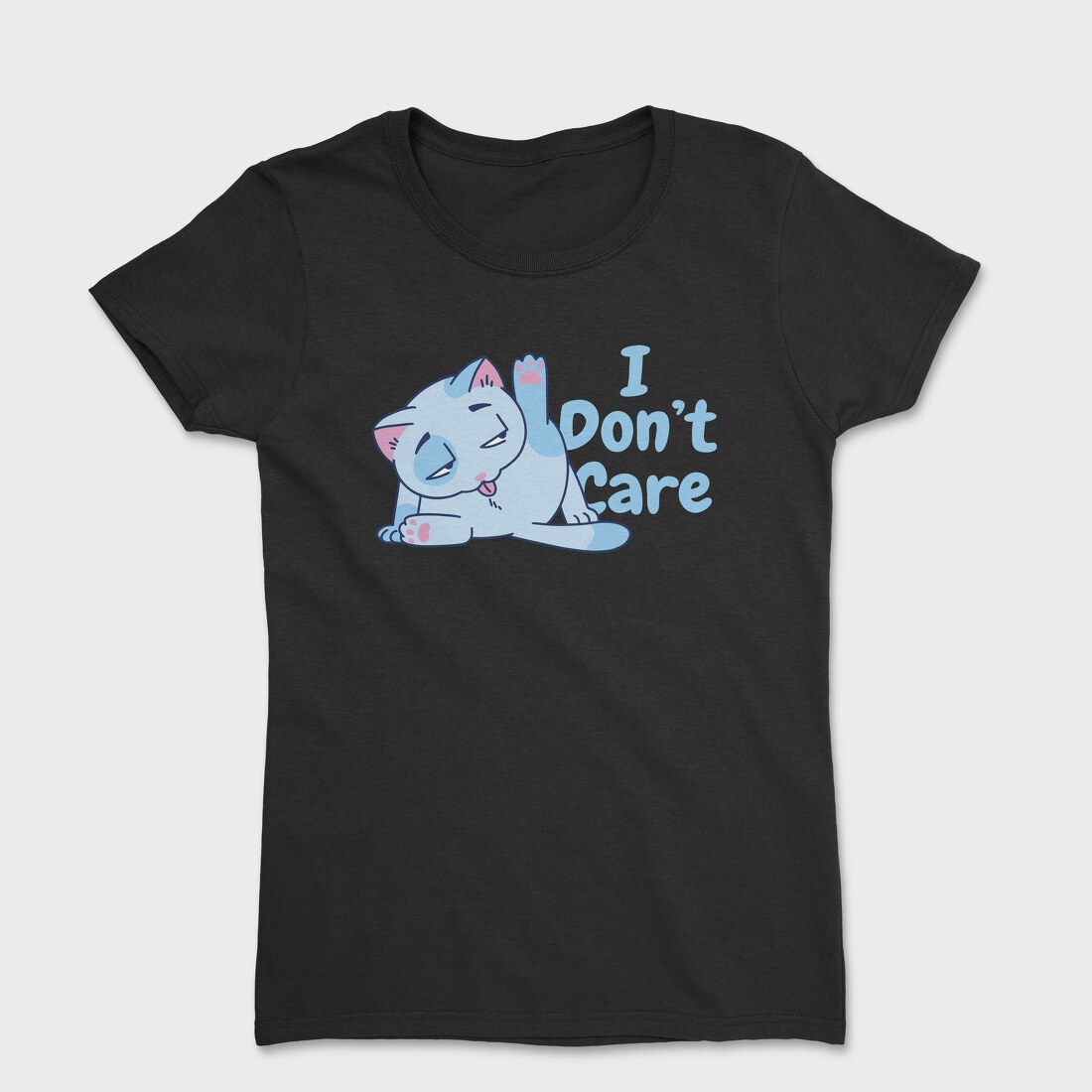 Cartoon Cat Licking I Don T Care, Tricou Femei