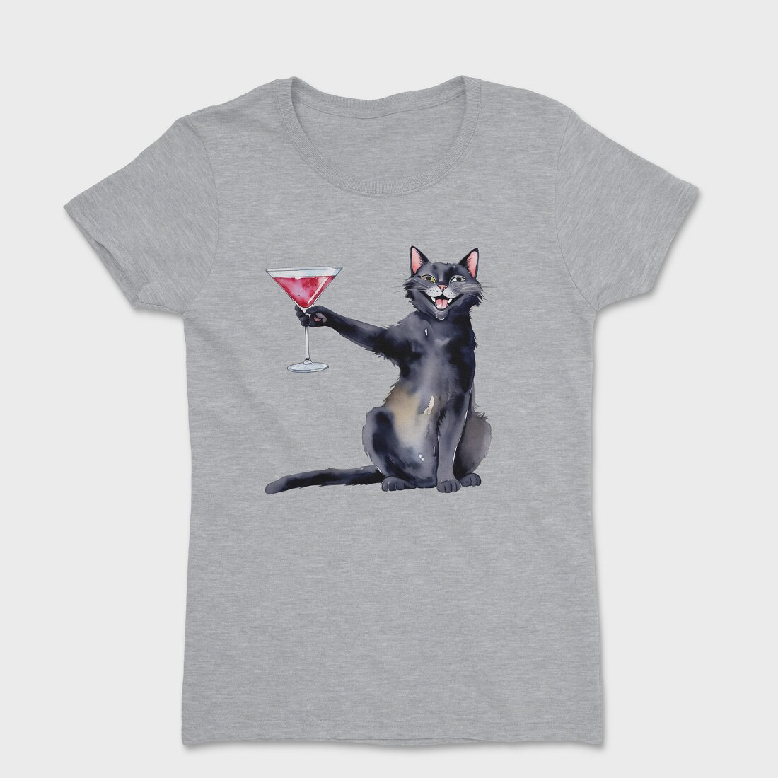 Cat With Martini Throw Pillow Black, Tricou Femei